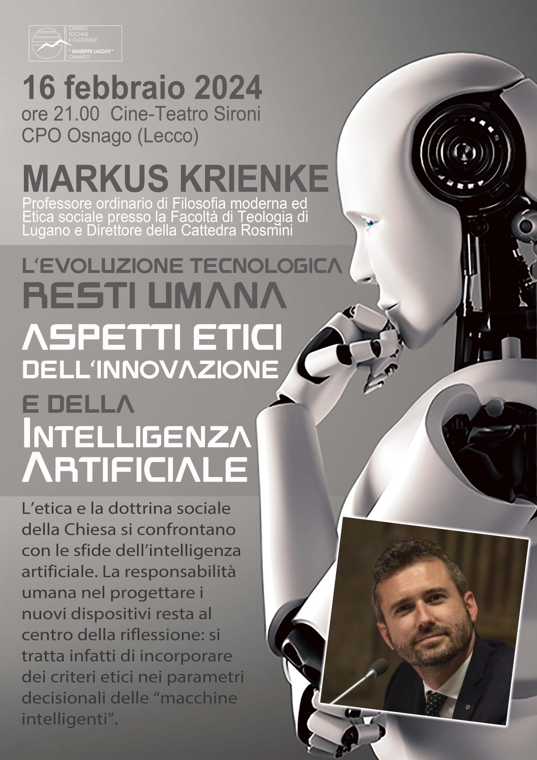 Se ne parlerà il 16 febbraio, presso la Sala Cine-Teatro Sironi di Osnago (Lecco), con il professor Markus Krienke, professore ordinario di Filosofia moderna ed Etica sociale presso la Facoltà di Teologia di Lugano e direttore della Cattedra Rosmini.