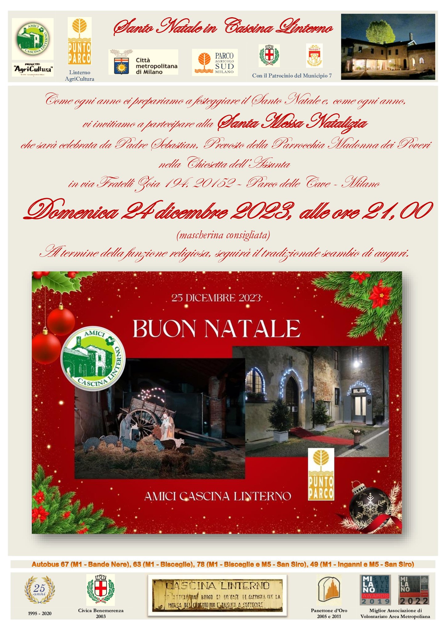 Come ogni anno Cascina Linterno si prepara a festeggiare il Santo Natale con la Santa Messa Natalizia celebrata da Padre Sebastian, Prevosto della Parrocchia Madonna dei Poveri