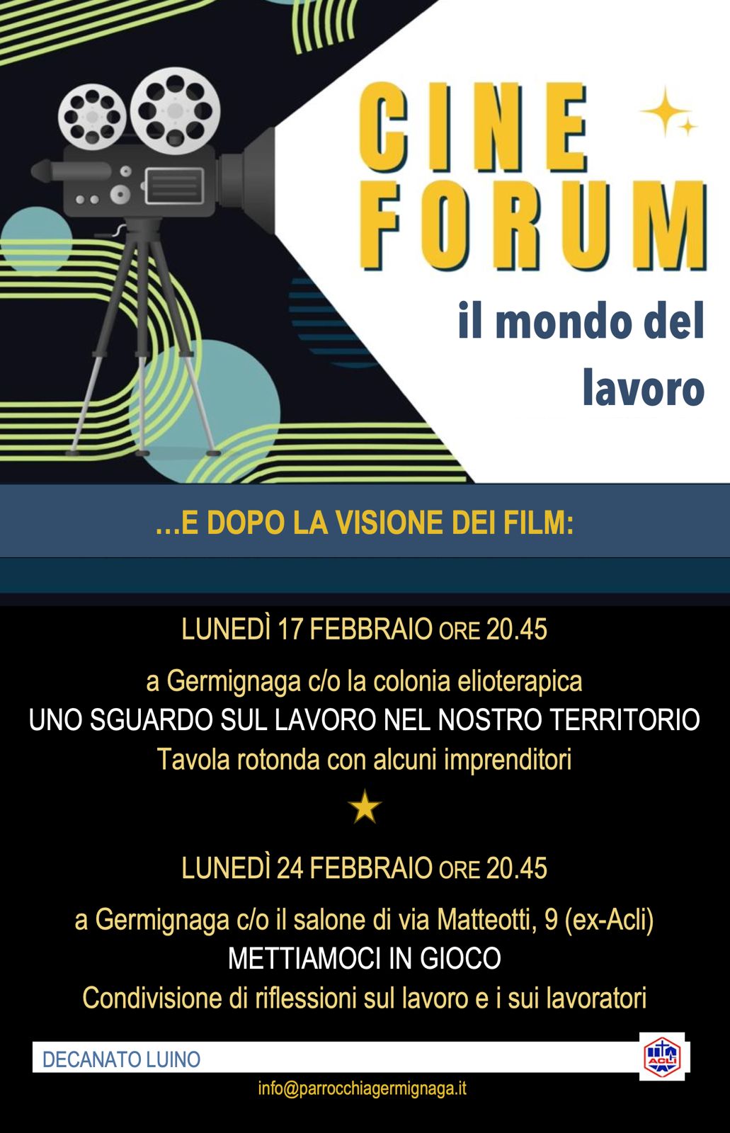 Dopo le tre serate di cineforum sul mondo del lavoro, promosso dal Decanato di Luino e Acli, che aspira ad essere occasione di ascolto e confronto, si continua con due incontri, sempre il lunedì.