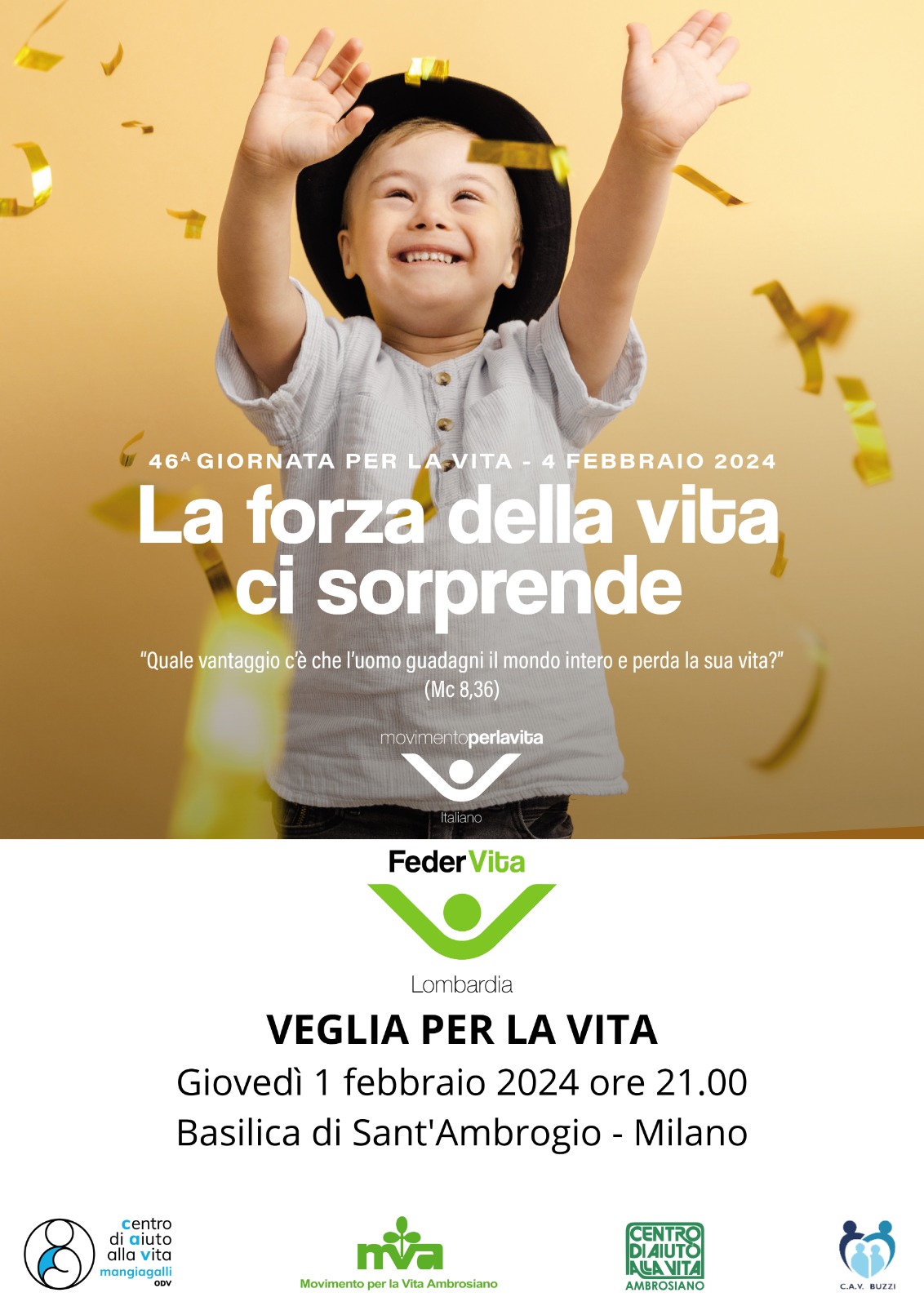 La serata è organizzata FederVita Lombardia, con il coinvolgimento del Movimento per la vita ambrosiano, Cav Mangiagalli, Cav Buzzi e Cav Ambrosiano.