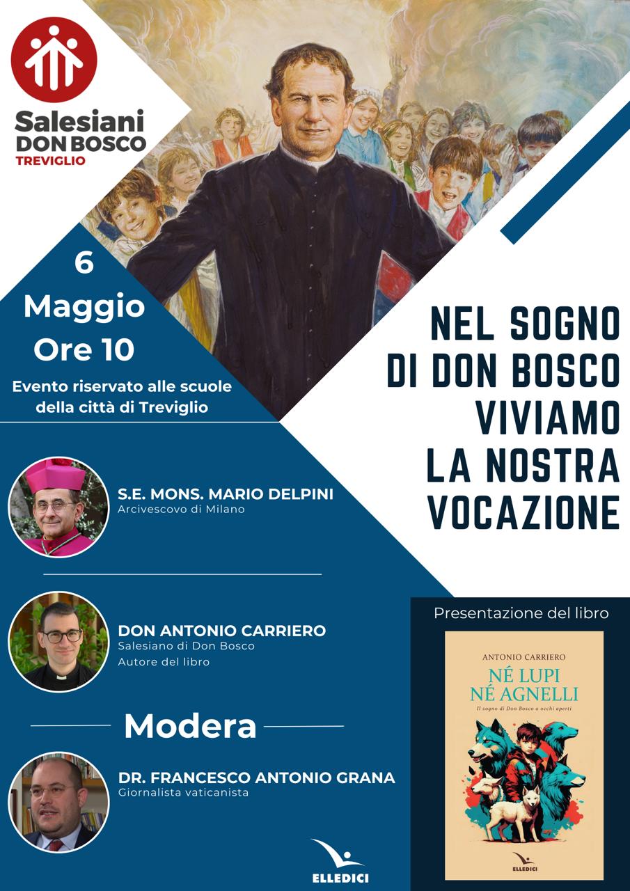 Lunedì 6 maggio alle 10 i Salesiani di don Bosco di Treviglio organizzano un incontro con l’Arcivescovo e don Antonio Carriero, salesiano di don Bosco e autore del libro “Nè lupi, nè agnelli”.