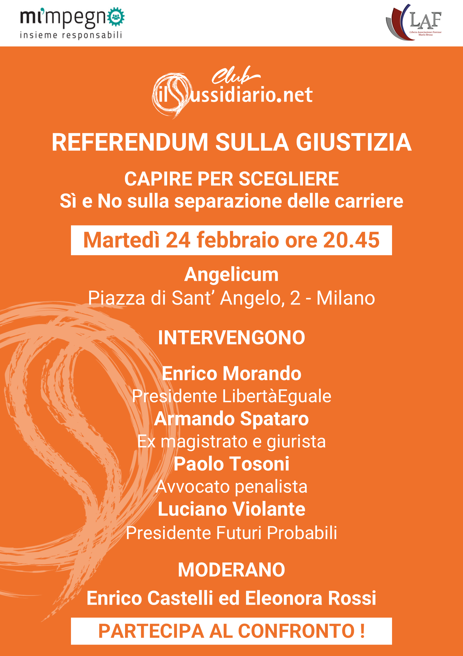 In vista del referendum sulla Giustizia del 22 e 23 marzo, il quotidiano IlSussidiario.net ha organizzato un convegno per approfondire i contenuti dei quesiti referendari. Sarà un’occasione per ascoltare e mettere a confronto le ragioni del Sì e del No, chiarire i nodi principali e comprendere meglio le scelte che ci attendono.