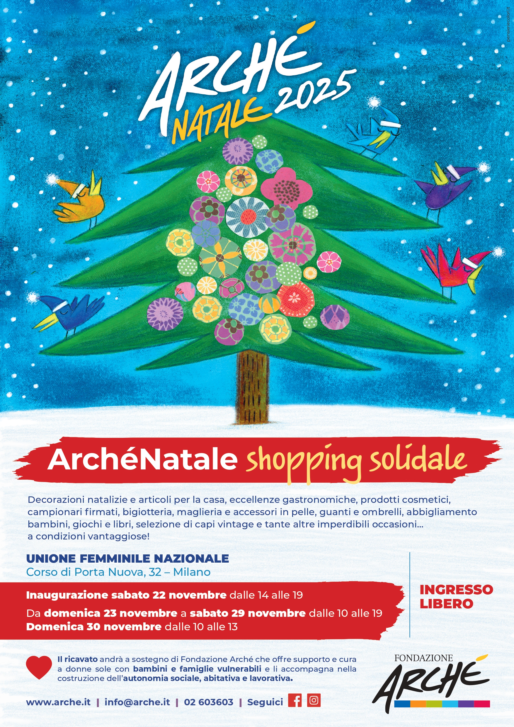 Anche quest’anno Fondazione Arché rinnova l’appuntamento con l’ArchéNatale, evento solidale che unisce bellezza, bontà e impegno sociale. Come da tradizione, in vista delle festività natalizie, l’iniziativa offrirà la possibilità di acquistare regali originali e di qualità, contribuendo concretamente a sostenere i progetti della Fondazione a fianco di mamme, bambini e famiglie in difficoltà.