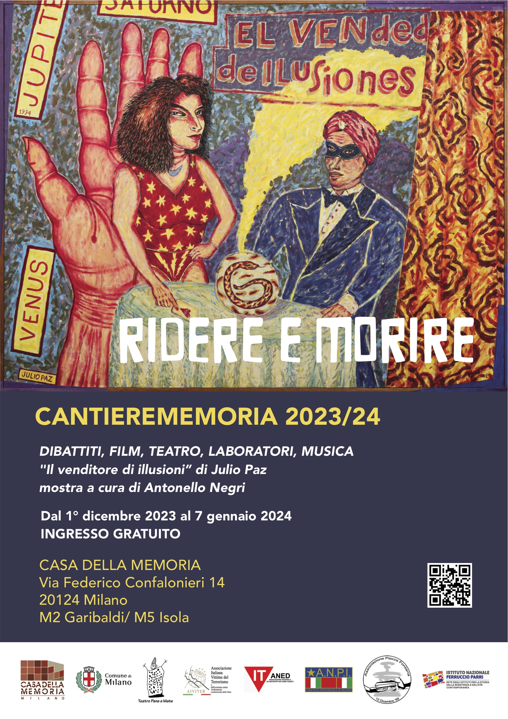 Per l’ottavo anno consecutivo Casa della Memoria ospita «Cantierememoria», festival aperto alla cittadinanza e articolato in diverse sezioni: una mostra, eventi musicali, letture, spettacoli teatrali, laboratori, installazioni, proiezioni e dibattiti. Si comincia il 1° dicembre con l’inaugurazione della mostra “Il venditore di illusioni” dell’artista Julio Paz.