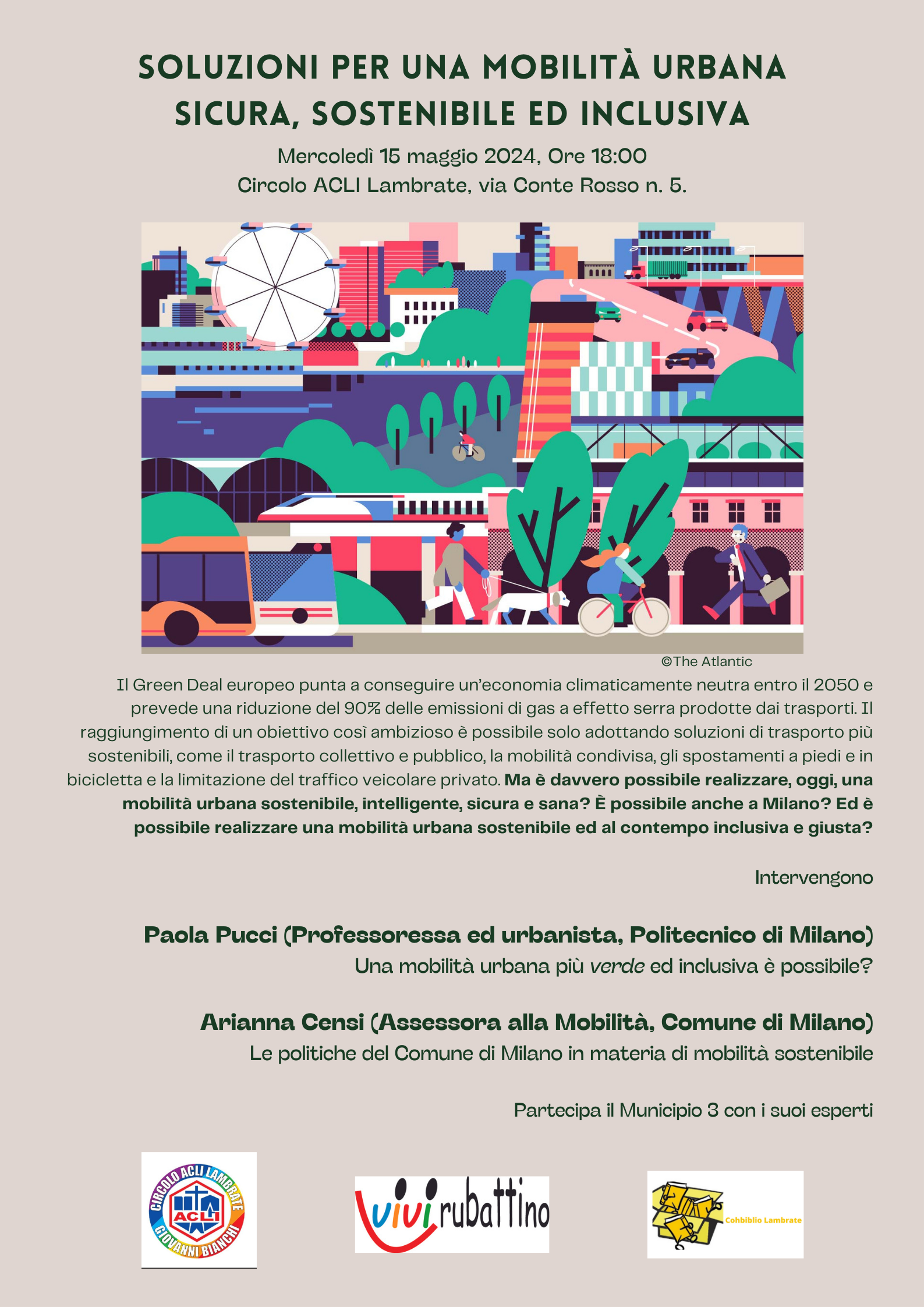 Mercoledì 15 maggio alle 18 a Lambrate, si terrà un incontro sulla mobilità urbana organizzato dal Circolo ACLI Lambrate e da associazioni del quartiere, con la collaborazione del Municipio 3.