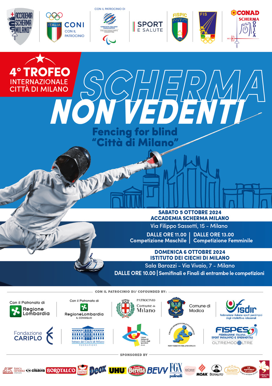 Una tre giorni dedicata all’inclusione e allo sport: Accademia Scherma Milano, in collaborazione con Fondazione Istituto dei Ciechi di Milano, Gruppo Sportivo Dilettantistico Non Vedenti Milano e Conad Scherma Modica, presenta la quarta edizione del workshop “Sport & Disabilità…in punta di fioretto” e del Trofeo Internazionale di Scherma Non Vedenti che si svolgerà il 5 e 6 ottobre a Milano.