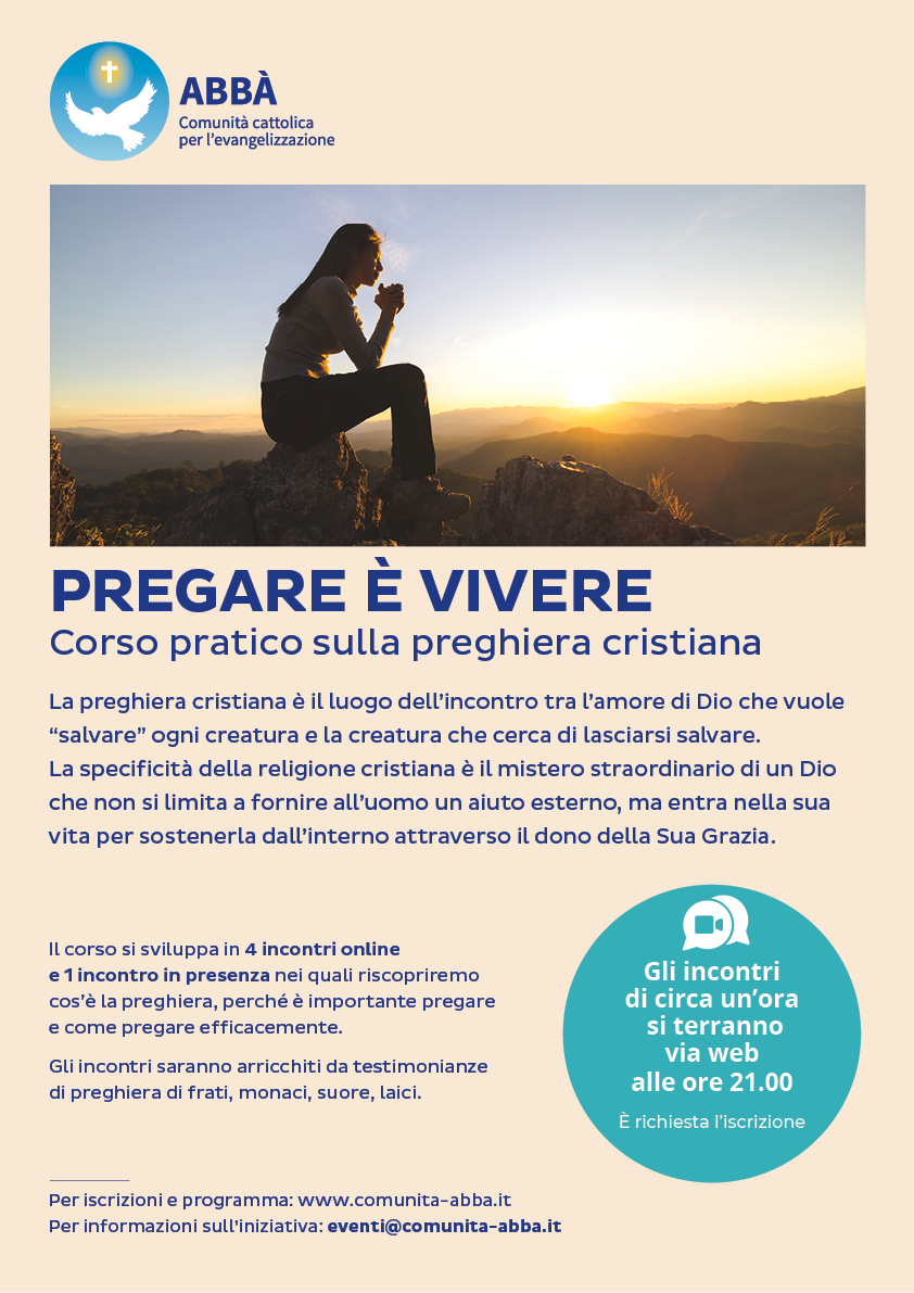 Dalla Comunità Abbà un ciclo di quattro incontri online e uno in presenza, per conoscere l’essenza e il senso della preghiera per la vita spirituale, approfondire l’importanza di pregare per un cammino cristiano autentico, condividere come pregare efficacemente.