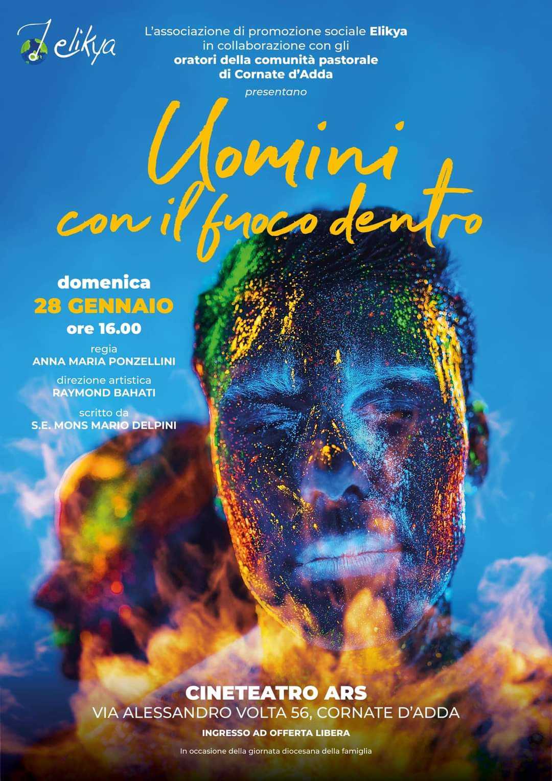 Domenica 28 gennaio, alle 16, in occasione della Festa della famiglia, presso il CineTeatroArs di Cornate d’Adda andrà in scena Uomini con il fuoco dentro, spettacolo musicale a cura dell’associazione di promozione sociale Elikya.