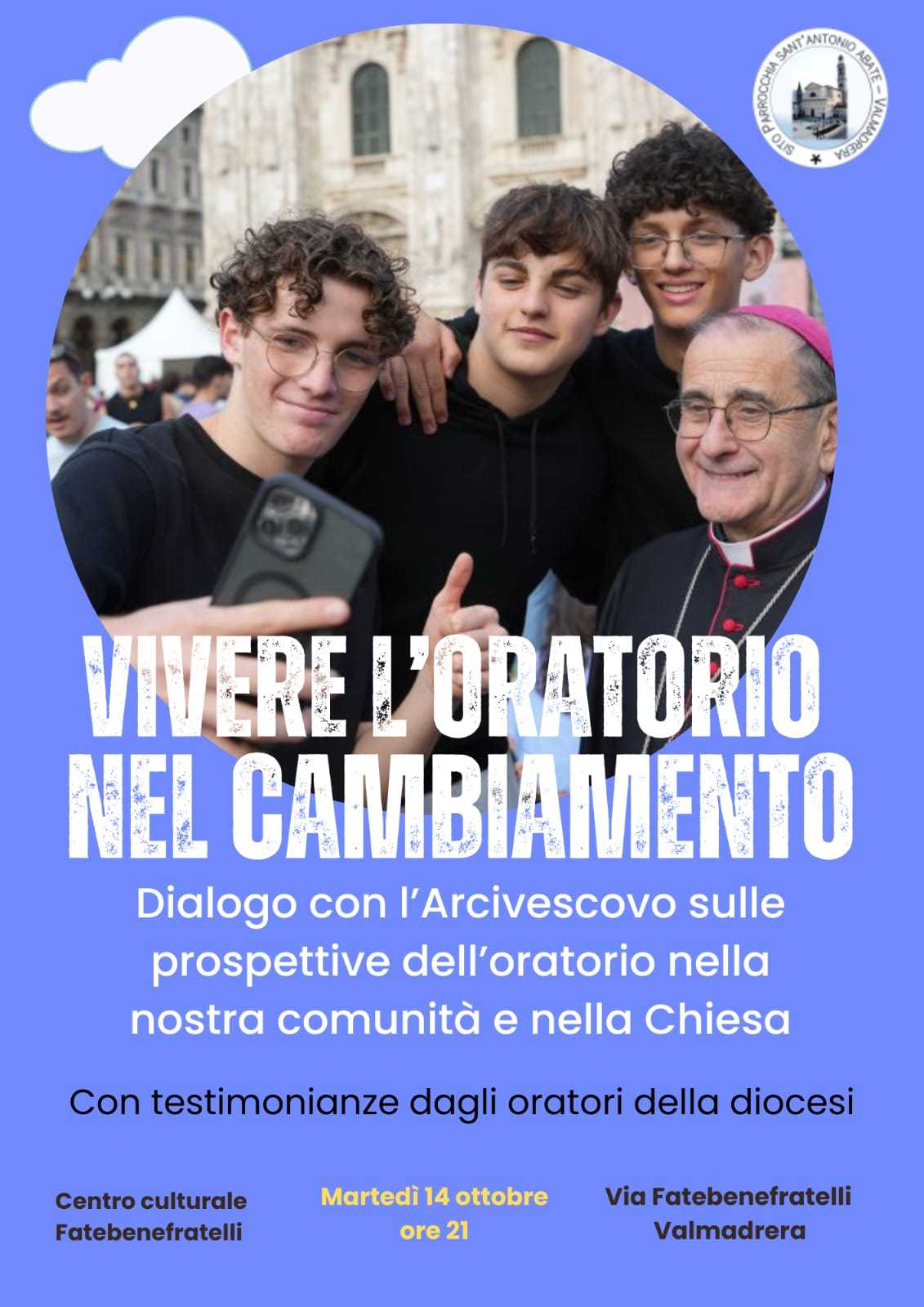Martedì 14 ottobre l’ Arcivescovo di Milano mons. Mario Delpini sarà a Valmadrera per parlare di ragazzi e giovani. “Vivere l’oratorio nel cambiamento” è il tema dell’incontro che si svolgerà al Centro culturale Fatebenefratelli. Cambiamento che per Valmadrera significa per la prima volta dopo secoli non avere più un sacerdote dedicato all’oratorio. Don Fabio Saccon dal primo settembre ha assunto l’incarico di vicario parrocchiale a Cologno Monzese, parrocchia S. Marco e S. Gregorio e il vicario episcopale don Gianni Cesena ha comunicato che al momento non è possibile prevedere una sua sostituzione nel quadro generale del calo di sacerdoti dell’intera diocesi.