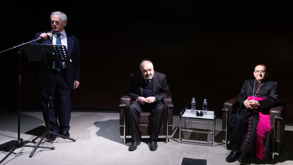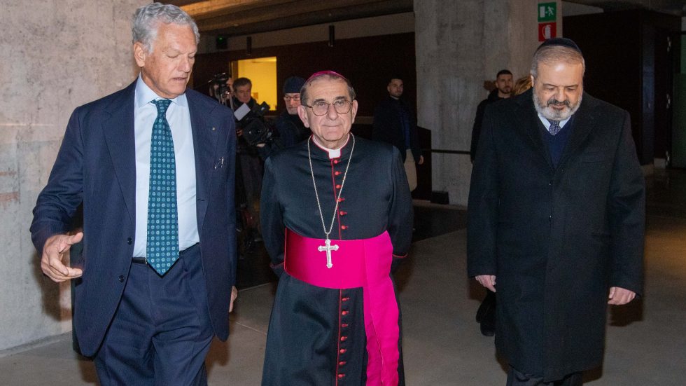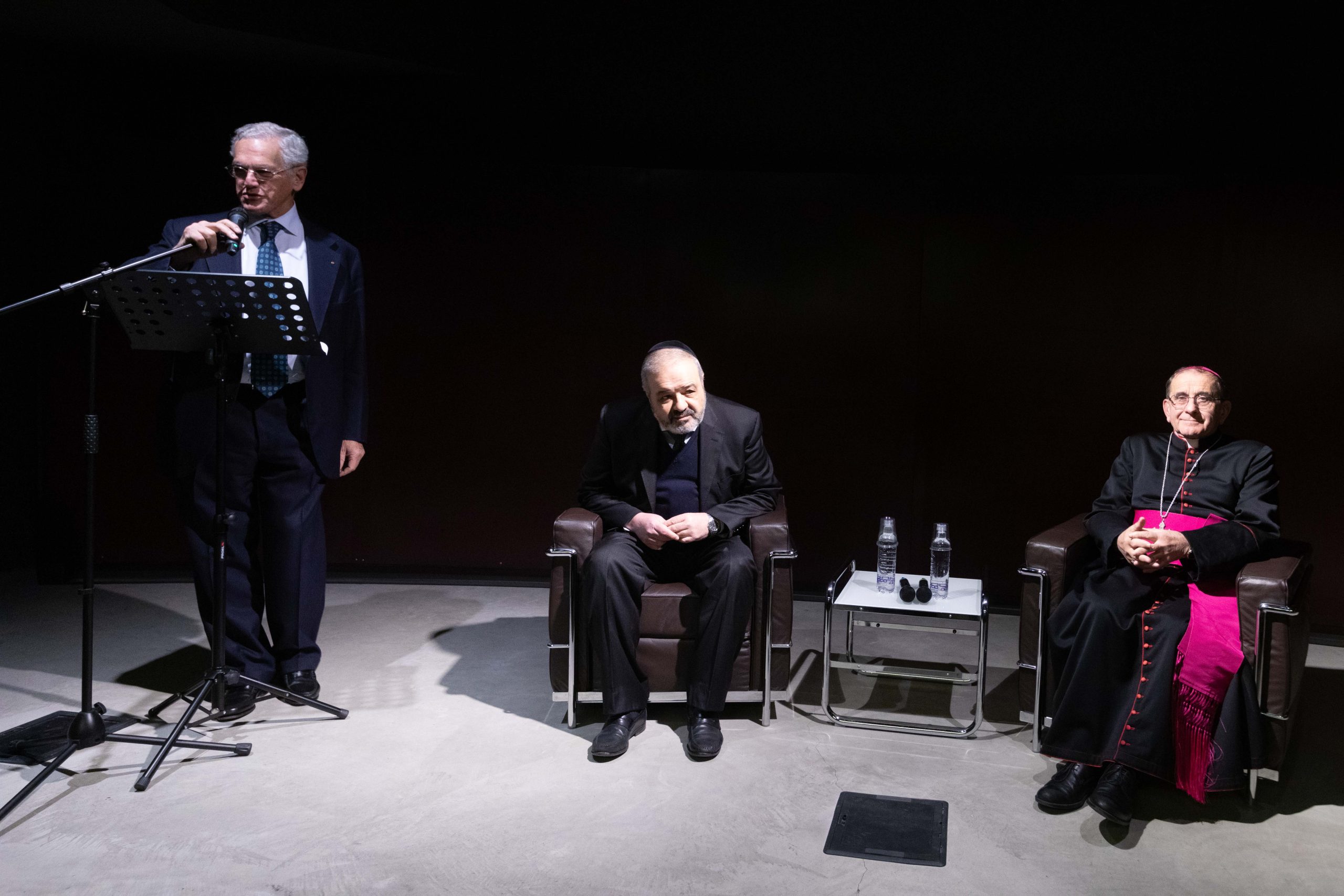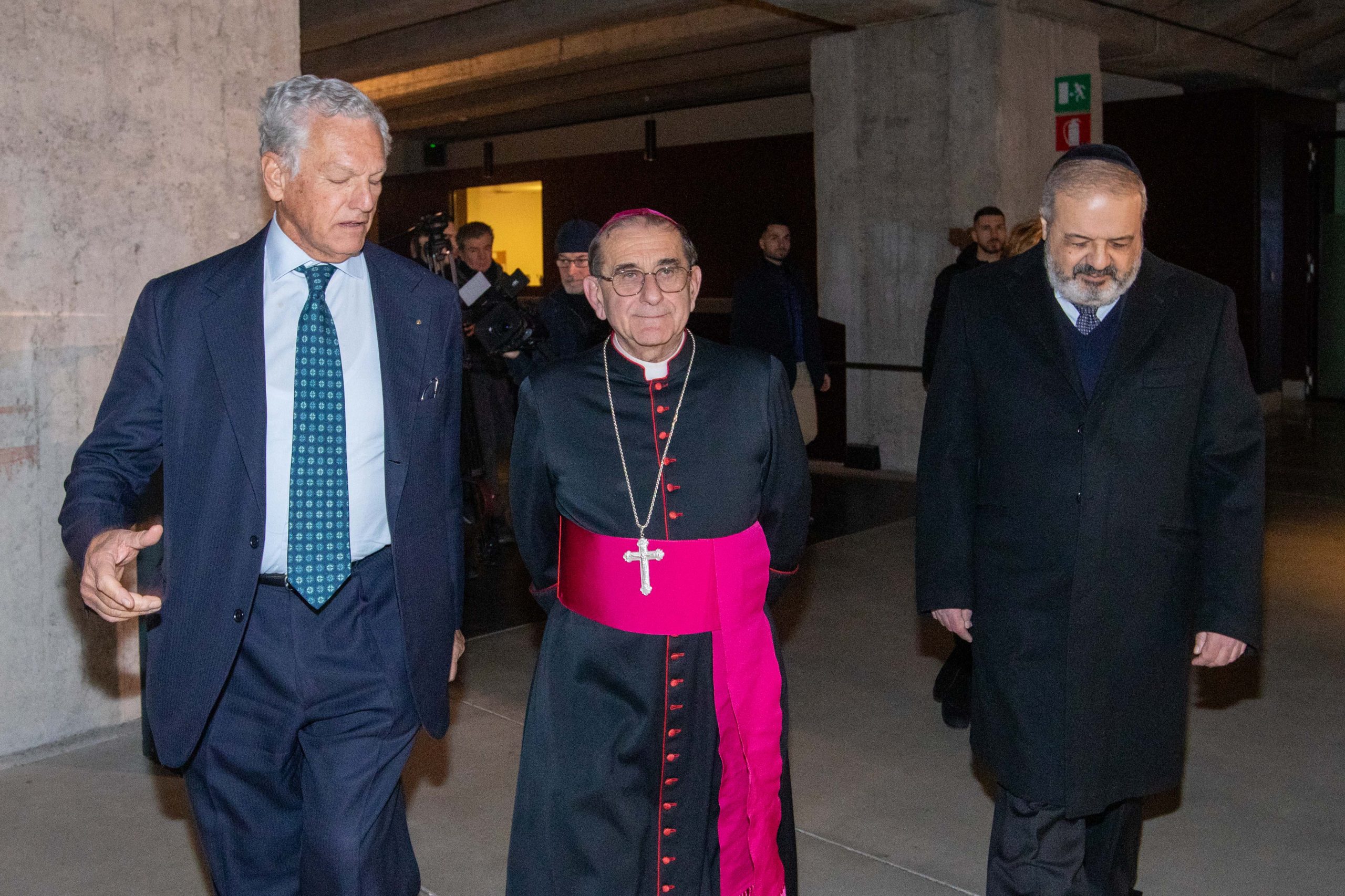 Mons. Delpini, Roberto Jarach e Milena Santerini (Ag. Fotogramma)