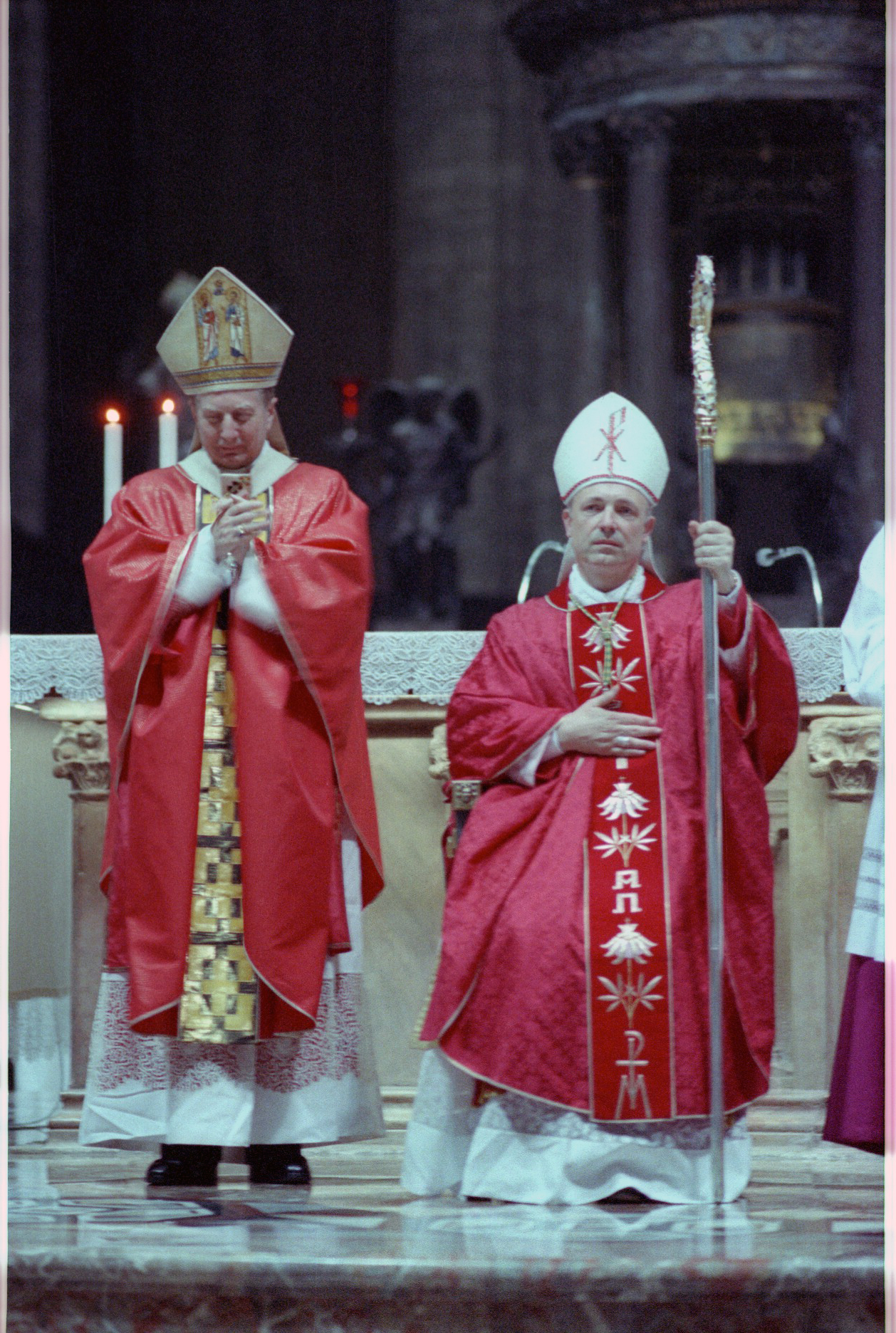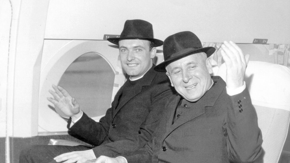 Don Giovanni Giudici, giovane sacerdote, con il cardinale Colombo, di cui era segretario