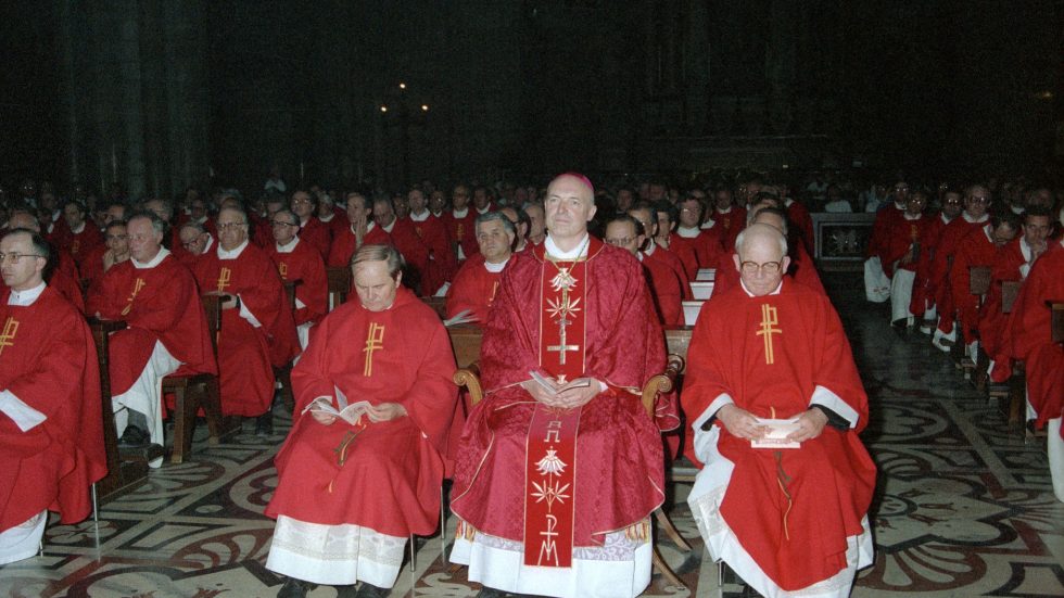 Mons. Giudici durante i funerali del card. Martini, presieduti da Angelo Scola