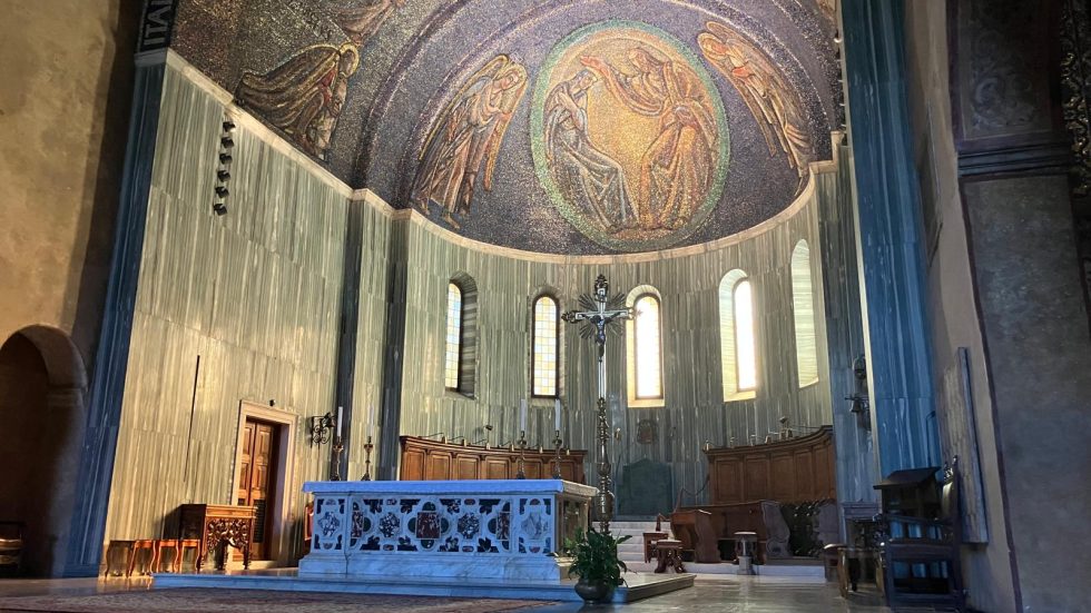 Mons. Delpini visita l'antica Basilica di Aquileia