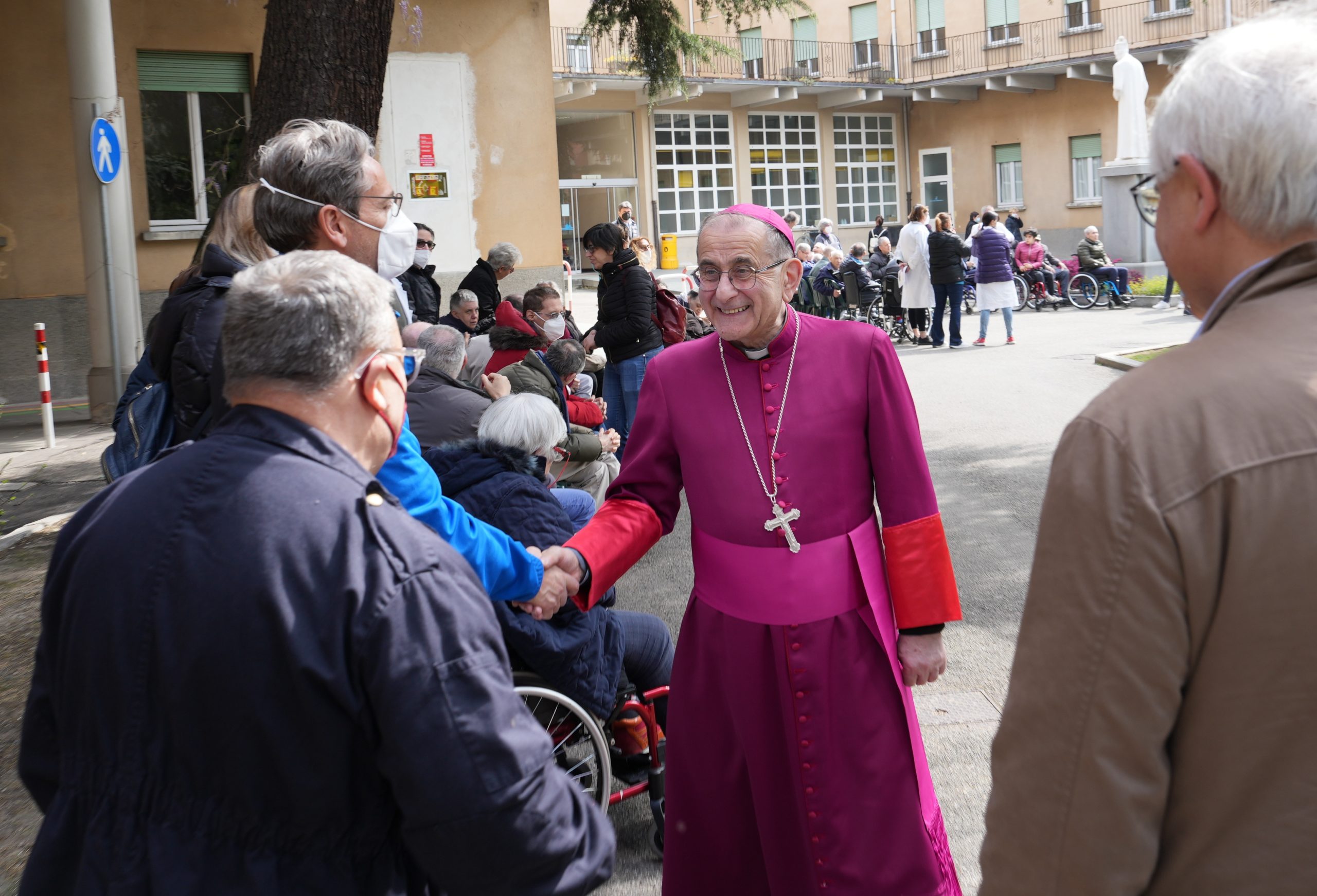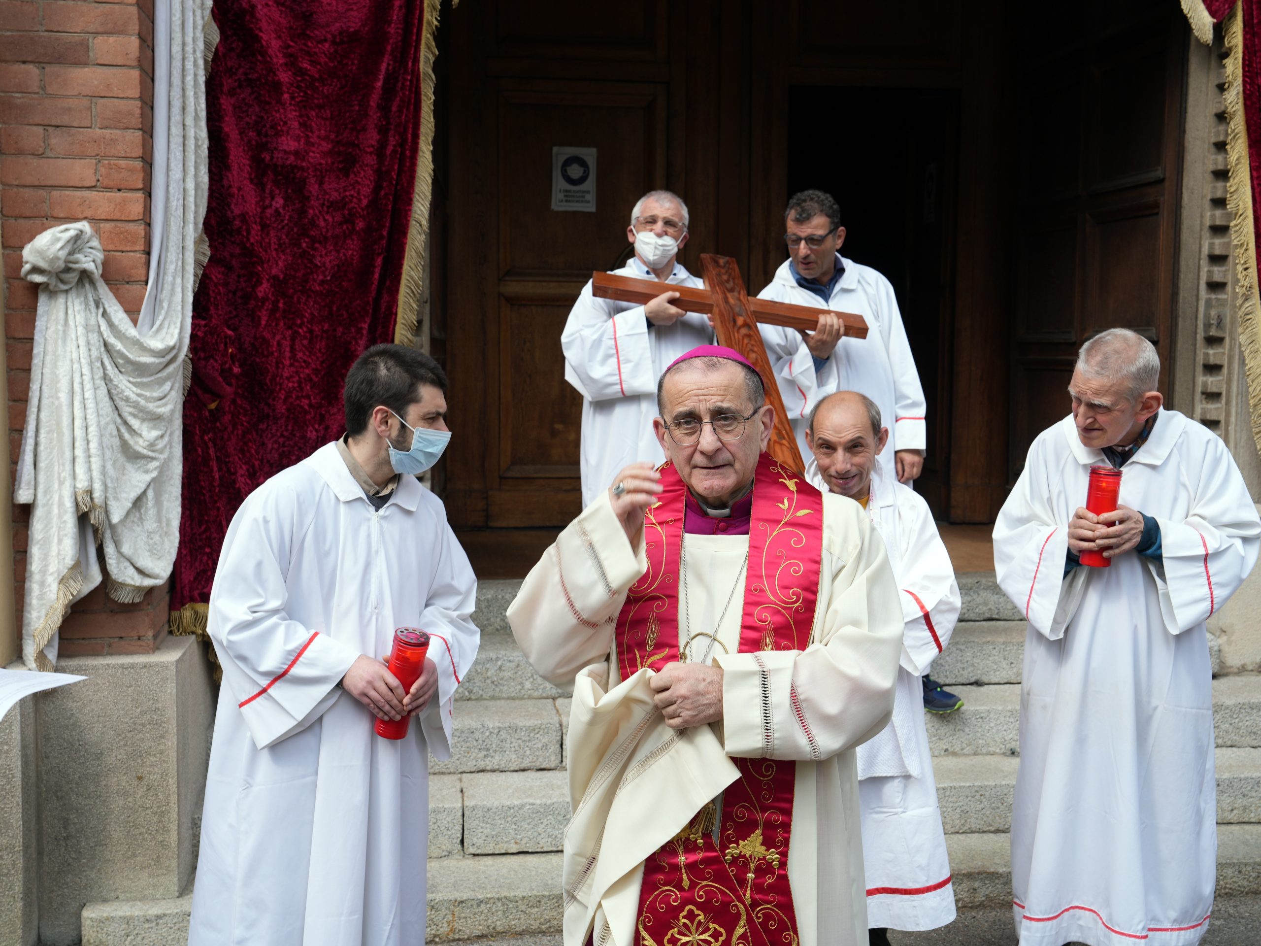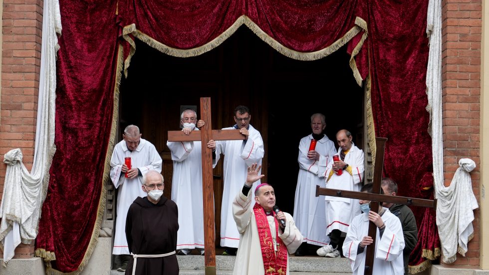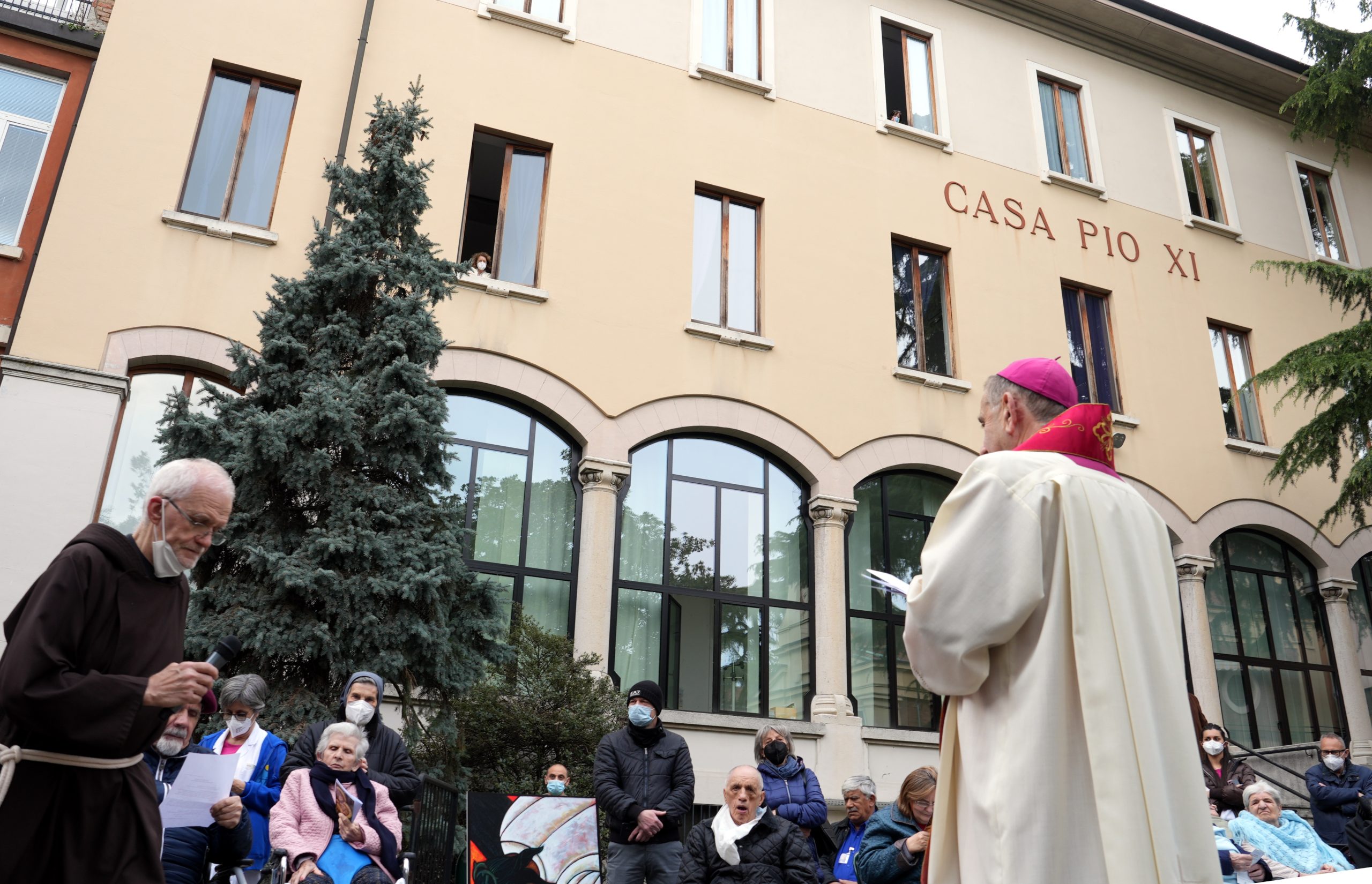 Mons. Delpini per la preghiera della Via Crucis con gli ospiti della Sacra Famiglia di Cesano Boscone (Ag. Fotogramma)