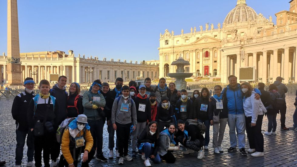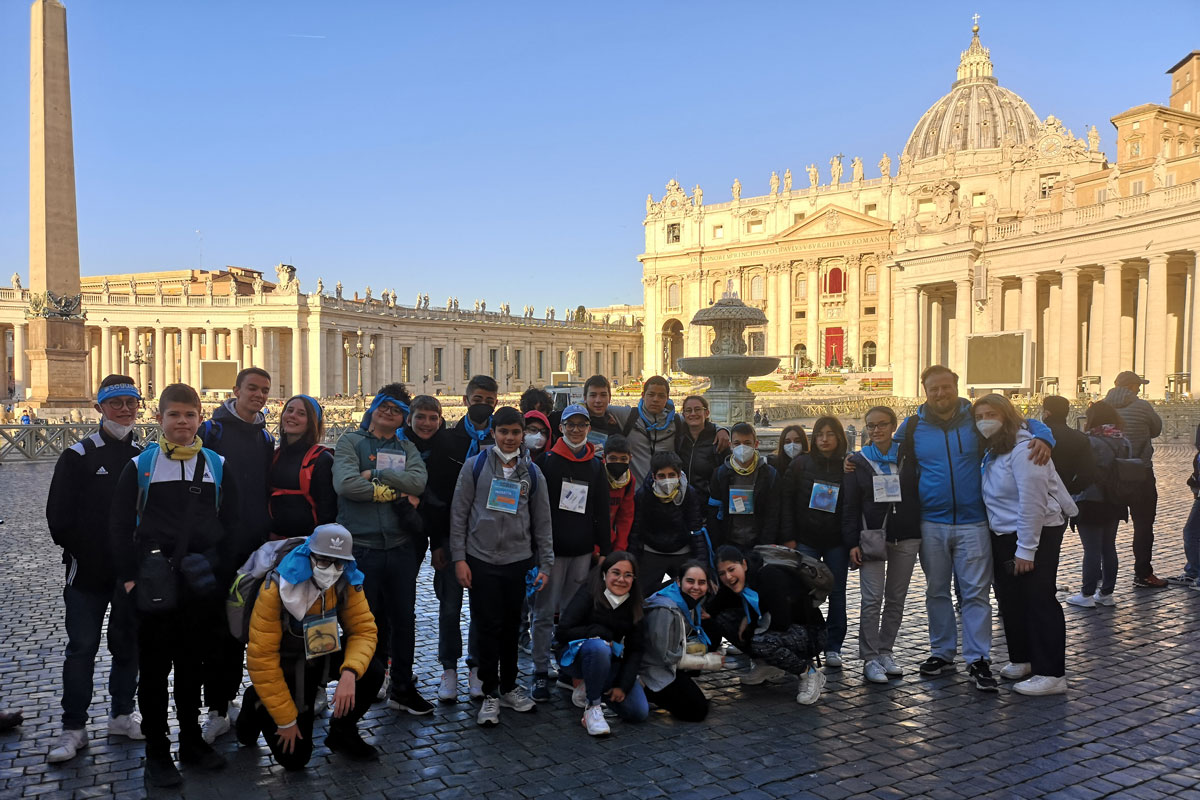 Un gruppo di ragazzi davanti alla Basilica