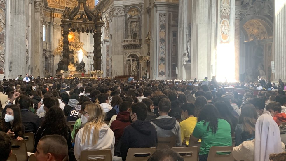 La Basilica gremita dagli adolescenti