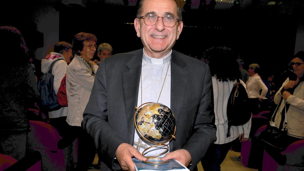 Blessing Okoedion, sopravvissuta alla tratta, con l'Arcivescovo di Milano (©Fotogramma)