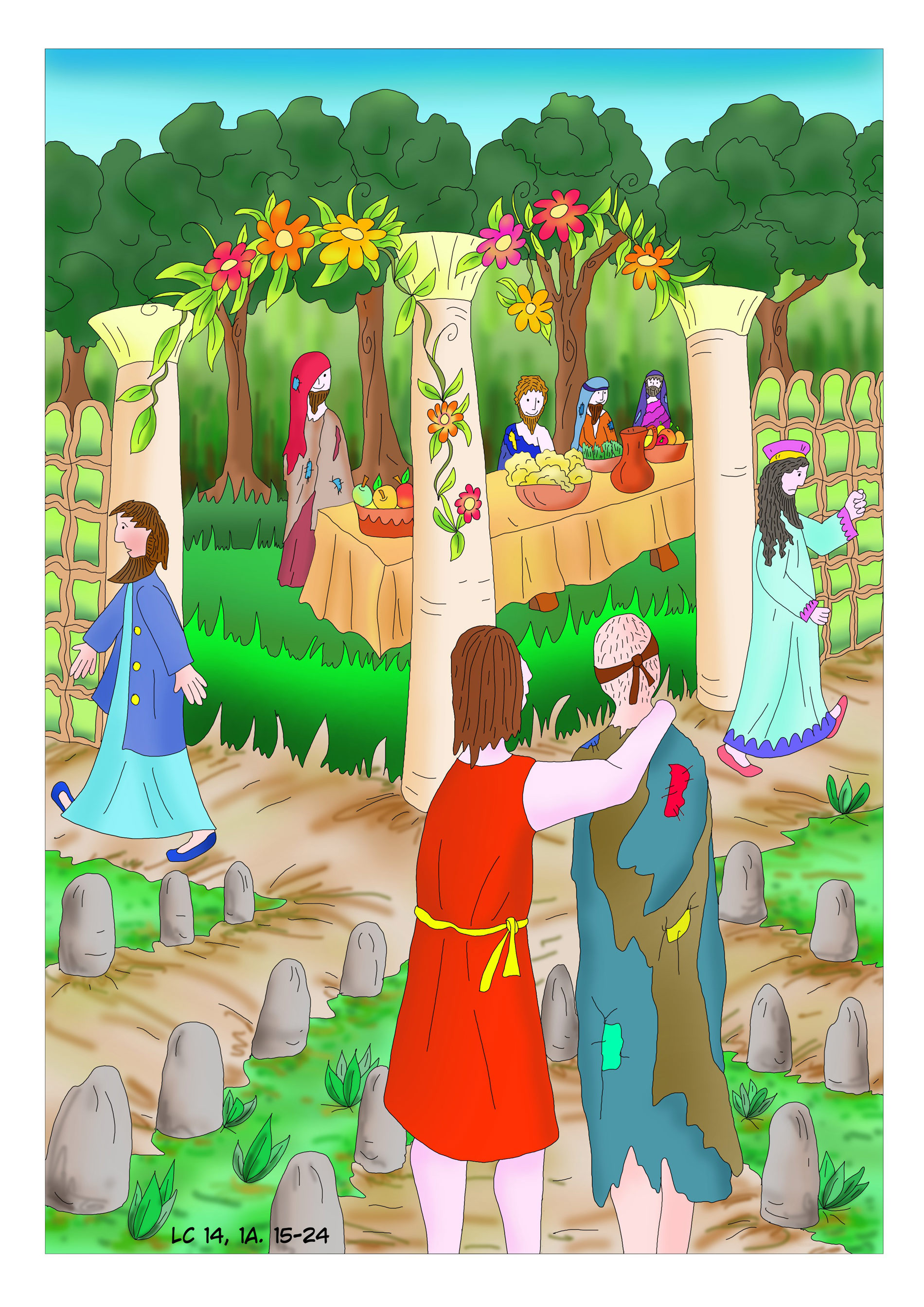 La seconda Domenica dopo la Dedicazione del Duomo, è la penultima domenica dell’anno liturgico, il Vangelo di Luca ci descrive Gesù che si reca a casa di uno dei farisei per pranzare e uno dei commensali esulta dicendo :” Beato chi prenderà cibo nel Regno di Dio ! “, forse perché pensa il contrario di quello che Gesù sta per spiegare con il racconto dell’uomo che da una grande cena e fa molti inviti. All’ora della cena, il padrone manda il suo servo a dire agli invitati che la cena è servita ma tutti, uno dopo l’altro, cominciarono a trovare scuse, uno dice che ha comprato un campo e ha da fare, un’altro ha comprato dei buoi e deve andare a provarli, un’altro dice che si è appena sposato e non può, e il servo va a riferire al padrone tutto. Il padrone di casa si arrabbia e dice al servo di uscire subito per le piazze e per le vie della città e di condurre al banchetto i poveri, gli storpi, i ciechi e gli zoppi ma nonostante tutto, il servo comunica al padrone che c’è ancora tanto posto libero. allora il padrone chiede al servo di scovare tra le siepi delle strade tutti ma proprio tutti fino a costringerli ad entrare perché la casa si riempia perché nessuno di quelli che erano stati invitati, gusterà la cena.