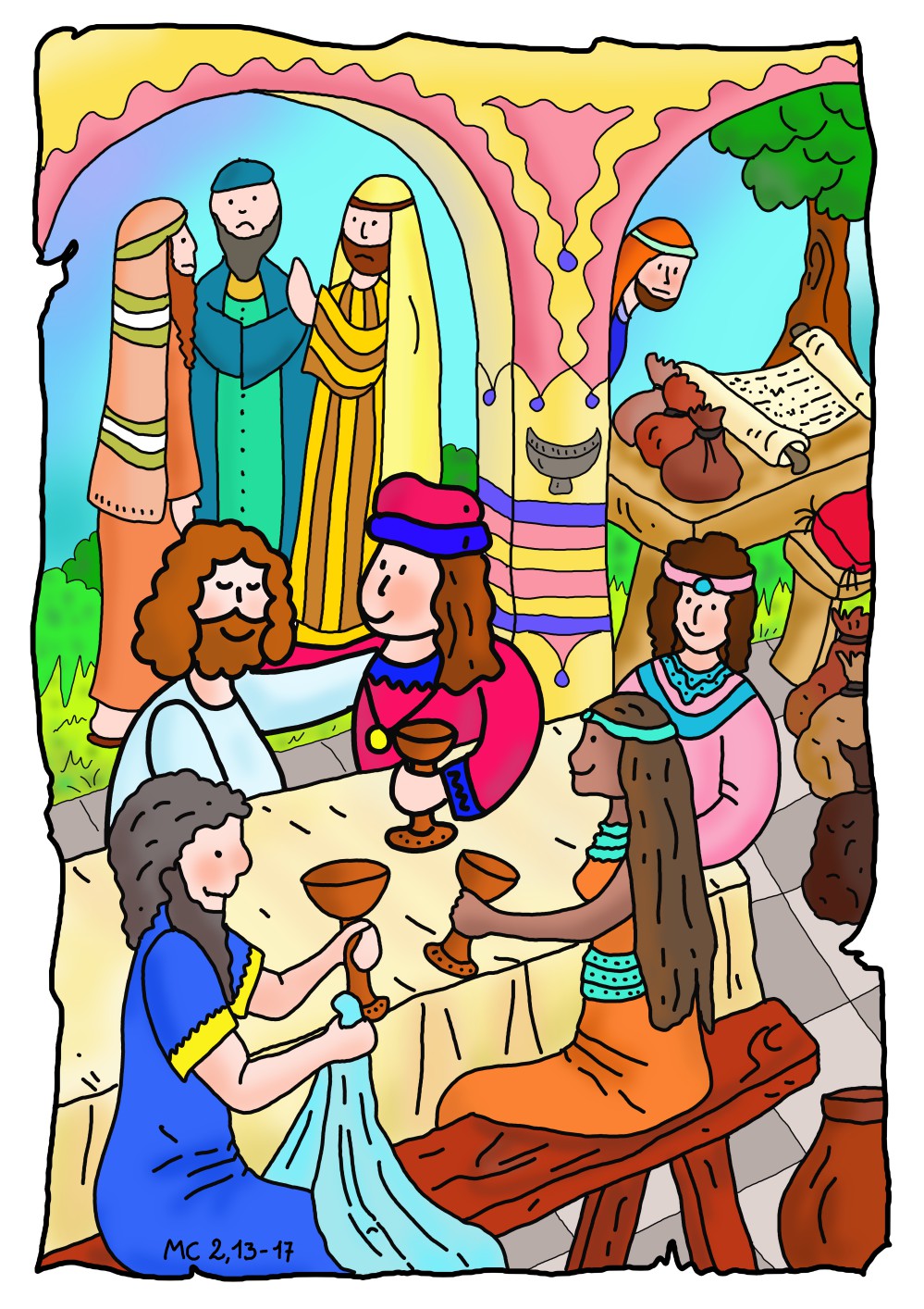 La penultima Domenica dopo l’Epifania è anche detta “della Divina Clemenza”, è la “festa” della misericordia di Dio nei riguardi dei peccatori. Questa domenica, vediamo uno spaccato della misericordia di Dio dal Vangelo di Marco, nella bella pagina della chiamata di Levi il pubblicano, il figlio di Alfeo che stava seduto al suo banco di lavoro a ritirare il denaro che serviva a pagare le tasse che i romani imponevano al popolo. Gesù passando vede Levi e gli dice :” Seguimi”. Levi che è Matteo che poi scriverà il Vangelo, si alza e raggiunge Gesù, Matteo ha molti amici peccatori e pubblicani come lui e invita Gesù a tavola con i suoi discepoli. Gli scribi e i farisei trovano subito da dire e domandano ai suoi discepoli : ” Perché mangia e beve insieme a pubblicani e peccatori ? ” Gesù risponde : ” Non sono i sani che hanno bisogno del medico, ma i malati; io non sono venuto a chiamare i giusti, ma i peccatori “.