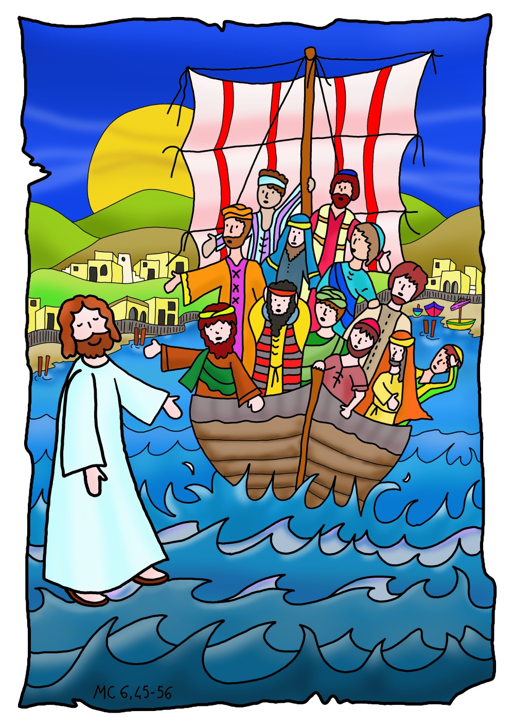Quarta domenica dopo l’Epifania, la liturgia di oggi ci mostra che Gesù è il Signore del creato tanto che….dopo aver insegnato e aver sfamato una gran folla con il pane che aveva benedetto, Gesù fa salire i suoi discepoli sulla barca per precederlo sull’altra riva, a Betsàida, mentre lui si congeda dalla folla. Poi Gesù sale sul monte a pregare, e a sera, si accorge che i suoi discepoli sono in mare affaticati nel remare perché hanno il vento contrario. Sul finire della notte, Gesù va verso di loro camminando sul mare e voleva oltrepassarli. I discepoli, vedono che Gesù cammina sul mare e pensano che è un fantasma e si mettono a gridare, sono sconvolti ma Gesù le dice : “ Coraggio, sono io, non abbiate paura! “ e sale sulla barca con loro e il vento si calma.
