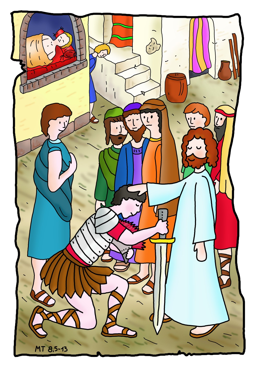 Dopo aver ammirato Gesù Signore del creato che cammina sulle acque, nella quinta domenica dopo l’Epifania, vediamo Gesù che manifesta la sua signoria sulla vita. Gesù entra a Cafarnao e le viene incontro un centurione che lo scongiura perché il suo servo è a casa paralizzato e soffre molto. Gesù le risponde: “ Verrò e lo guarirò”. Ma il centurione risponde che non è degno che Gesù venga in casa sua, e che basta solo una sua parola perché il suo servo venga guarito. Anche lui ha esperienza, ha dei soldati sotto di lui e loro fanno quello che ordina. Gesù si meraviglia e dice ai presenti che in Israele non ha trovato nessuno con una fede così grande, poi dice al centurione : “ Và, avvenga per te come hai creduto “. In quell’istante il servo del centurione fu guarito.