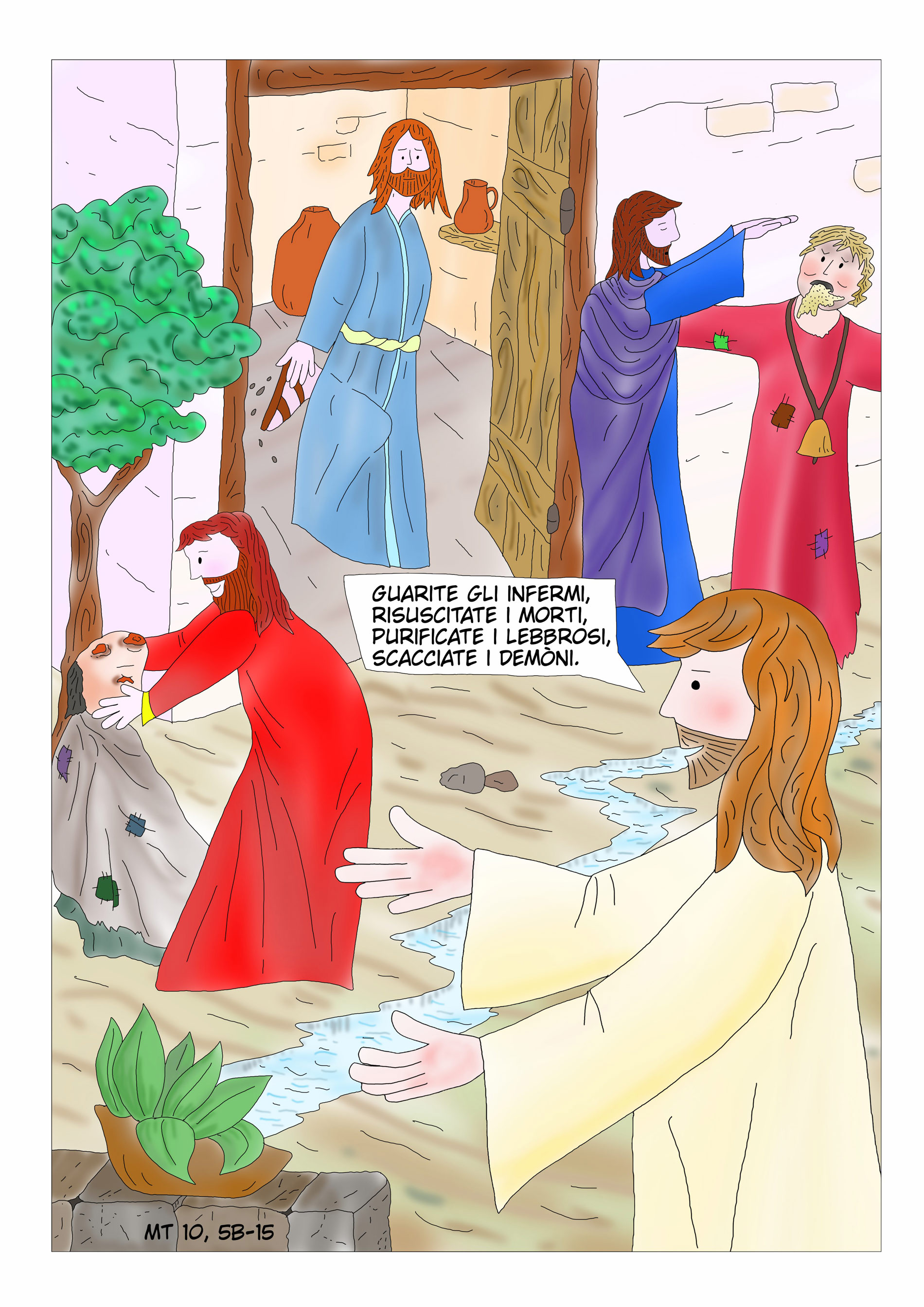 Dodicesima domenica dopo Pentecoste, il Vangelo di Matteo ci racconta di quando Gesù ha chiamato i suoi apostoli e li ha inviati per la terra di Israele dandogli “ i poteri “ che lui stesso aveva. Gesù si raccomanda di non andare tra i pagani e dai samaritani, dice di predicare lungo la via dicendo che il regno dei cieli è vicino. Gesù elenca anche quali sono i doni straordinari che gratuitamente hanno ricevuto e che gratuitamente doneranno guarendo gli infermi, risuscitando i morti, purificando i lebbrosi, scacciando i demoni. Un’altra raccomandazione importante per l’affidamento totale al Padre e per essere credibili è questa : “ Non procuratevi oro, né argento né denaro nelle vostre cinture, né sacca da viaggio, né due tuniche, né sandali, né bastone perché chi lavora ha diritto al suo nutrimento “. Gesù indica tutto…parla anche dell’accoglienza di chi incontreranno nell’annuncio del regno e nella buona testimonianza e dice : “ Se qualcuno poi non vi accoglie e non da ascolto alla vostre parole, uscite da quella casa e da quella città e scuotete la polvere dai vostri piedi “.