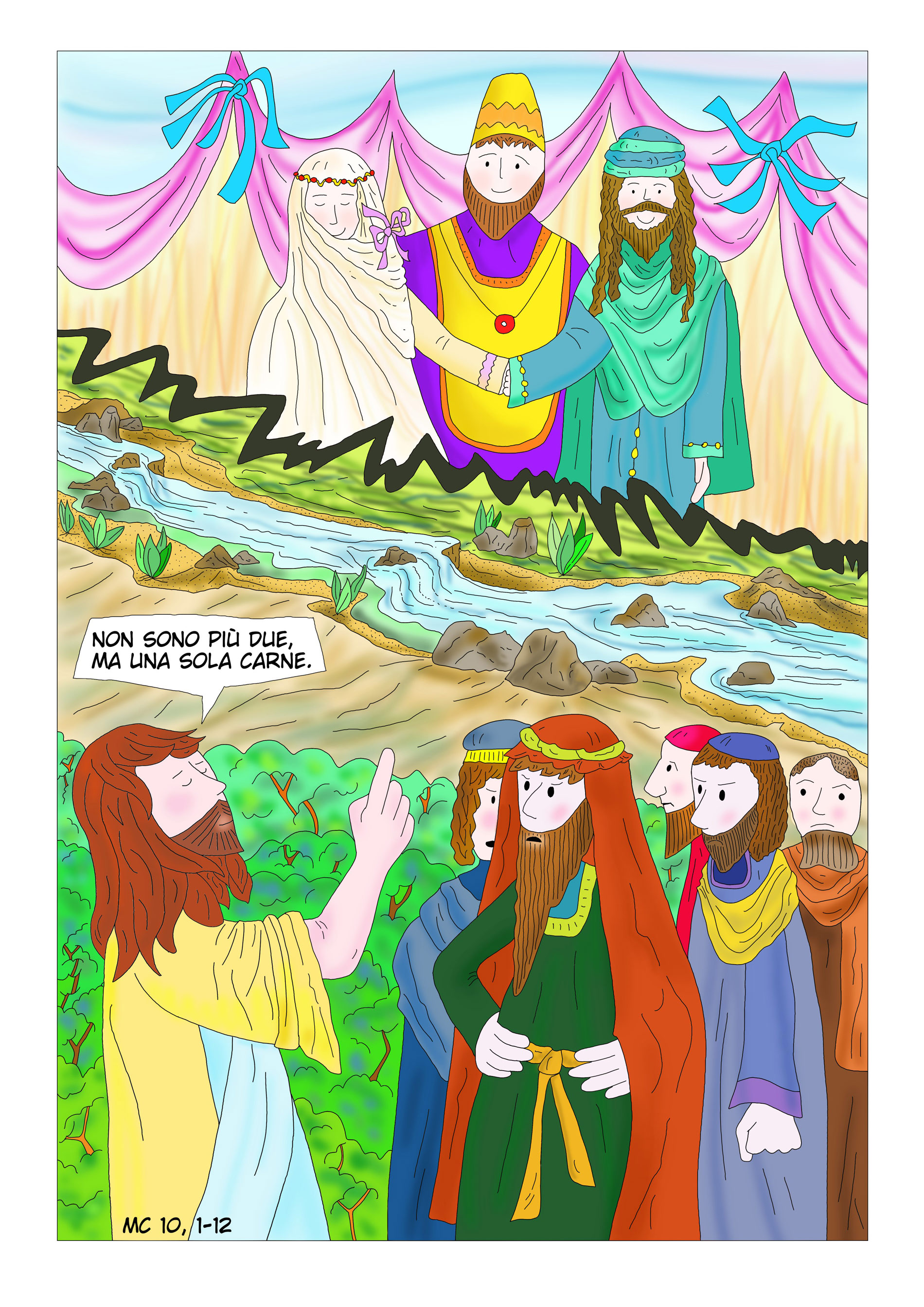 metterlo alla prova e gli fanno domande sul matrimonio e Gesù risponde : “Dall’inizio della