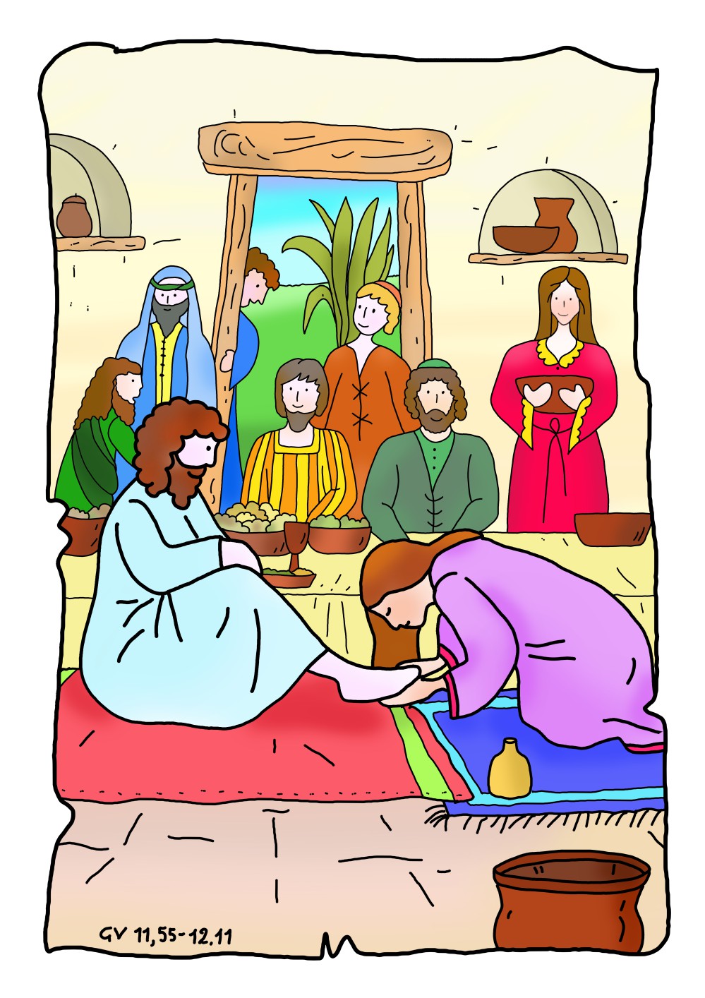 Domenica delle Palme, sesta di Quaresima…ormai siamo nella settimana santa, la settimana “autentica”, la più difficile della vita di Gesù, dei suoi amici e di quei Giudei che stavano organizzando di farlo morire come ci descrive il Vangelo di Giovanni, si domandavano se Gesù veniva alla festa di Pasqua per arrestarlo. Gesù, sei giorni prima della Pasqua, va a Betània nella casa di Lazzaro che aveva risuscitato, e delle sorelle Marta e Maria per una cena, Marta serviva i commensali invece Maria, compie un gesto tenerissimo, prende trecento grammi di profumo di vero nardo molto prezioso e cosparge i piedi di Gesù poi li asciuga con i suoi capelli e tutta la casa si riempie dell’aroma di quel profumo. Giuda, il discepolo che stava per tradire Gesù e che teneva la cassa, domanda come mai non si è venduto quel profumo per trecento denari, tanto utili per la carità ai poveri. Gesù risponde :” Lascia fare perché essa lo conservi per il giorno della mia sepoltura. I poveri infatti li avrete sempre con voi, ma non sempre avete me”.