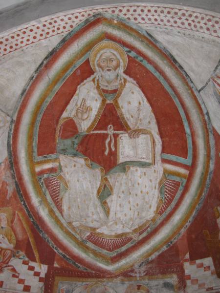 Fino alla metà del Settecento, l’abside dell’Abbazia era decorato da affreschi del Quattrocento. Questi furono in gran parte perduti a seguito di una ricostruzione dell’abside. Attualmente, si conserva solo una parte degli affreschi precedenti: si tratta di ciò che rimane di una imponente figura del Padre Eterno in mandorla, della quale rimangono visibili solo i piedi.