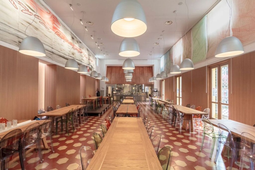 Altra novità riservata dal Refettorio per la Milano Design Week è l’apertura al pubblico. Per la prima volta, eccezionalmente, i volontari del Refettorio offriranno al pubblico visite guidate alle opere d’arte custodite in questo luogo: oltre all’installazione “Ut Unum” di Anna Barbara, la stampa tipografica “Senza titolo” di Carlo Benvenuto, l’affresco “Affresco” di Enzo Cucchi, l’installazione al neon “Nomoreexcuses” di Maurizio Nannucci, la scultura “Acquasantiera” di Gaetano Pesce e i 13 tavoli d’autore disegnati dai più noti designer. Le visite si svolgeranno da martedì 12 a sabato 16 aprile, dalle 15 alle 18, su appuntamento chiamando il numero 02.760377 oppure scrivendo a eventi@refettorioambrosiano.it. La sera, dalle 18.30, il Refettorio Ambrosiano continuerà preparare la cena per i suoi ospiti.