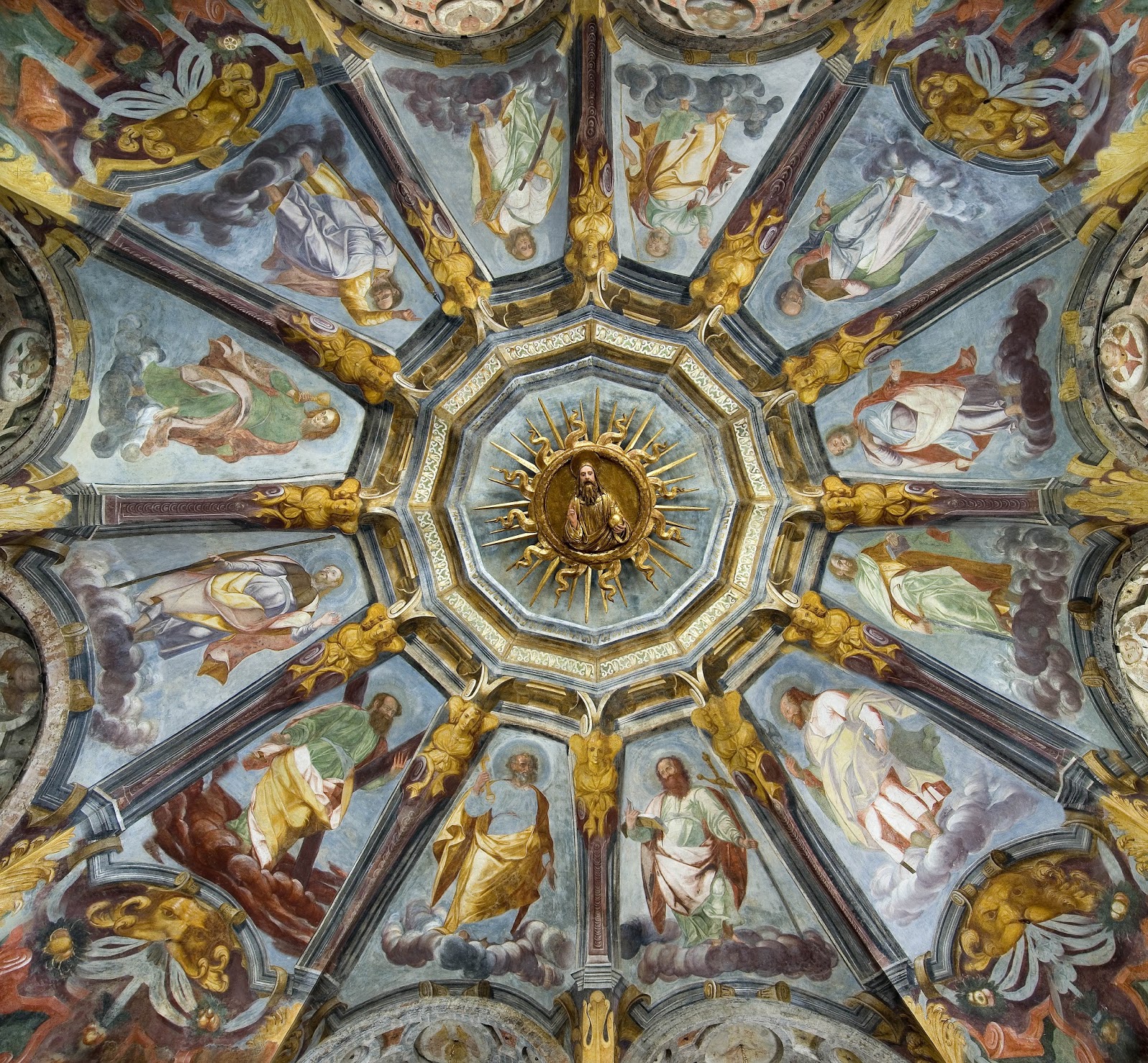 Il programma pittorico proseguì con i frati minimi di san Francesco di Paola, giunti all’agreste tempio milanese a metà del XVI secolo. Nuove scene furono aggiunte sui pilastri del sacello, ma soprattutto venne affrescata la singolare volta “a ombrello”: nei dodici spicchi, i dodici apostoli in un carosello celestiale dai toni squillanti e dalla vivace espressività dei volti. Una divina raggiera che ha il suo centro nel Dio Padre benedicente, astro d’amore e di beatitudine che rifulge di luce: una figura che si è voluto far emergere non solo simbolicamente, ma anche materialmente, non essendo soltanto dipinta, ma scolpita in legno e modellata in stucco, databile a pochi anni dopo l’avvenuto miracolo.
