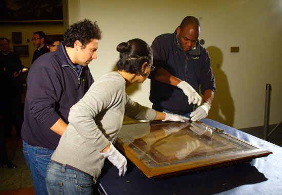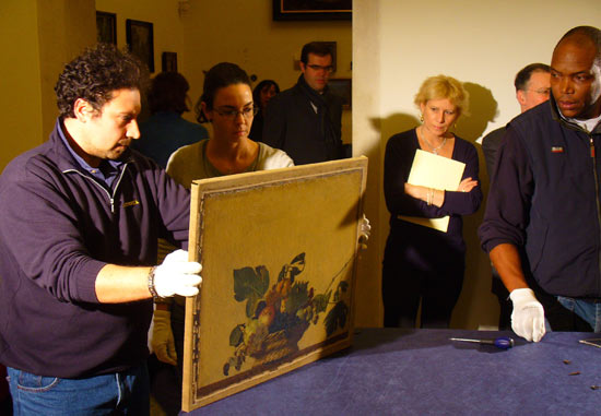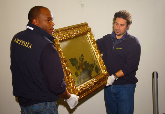 Per la prima volta da quattrocento anni, la celebre Canestra di Caravaggio lascerà la Pinacoteca Ambrosiana e la città di Milano. Il capolavoro di Michelangelo Merisi, infatti, sarà protagonista della mostra che a Roma, presso le Scuderie del Quirinale, dal prossimo 20 febbraio, celebrerà il quarto centenario della morte del grande pittore lombardo. Si tratta, dunque, di un evento epocale. Per l’occasione, l’opera è stata “analizzata” da un’équipe di restauratori della Soprintendenza di Brera, che hanno provveduto a rimuovere la cornice e i pannelli di plexiglass posti a protezione (momento che vi presentiamo nelle immagini qui sopra). Per la prima volta da quattrocento anni, la celebre Canestra di Caravaggio lascerà la Pinacoteca Ambrosiana e la città di Milano. Il capolavoro di Michelangelo Merisi, infatti, sarà protagonista della mostra che a Roma, presso le Scuderie del Quirinale, dal prossimo 20 febbraio, celebrerà il quarto centenario della morte del grande pittore lombardo. Si tratta, dunque, di un evento epocale. Per l’occasione, l’opera è stata “analizzata” da un’équipe di restauratori della Soprintendenza di Brera, che hanno provveduto a rimuovere la cornice e i pannelli di plexiglass posti a protezione (momento che vi presentiamo nelle immagini qui sopra). Un nuovo progetto digitale Nella circostanza, inoltre, la Canestra di Caravaggio sarà oggetto di un progetto di acquisizione digitale in altissima definizione, ad opera della società Haltadefinizione, leader nel settore, che ha già "scansito" l’Ultima Cena di Leonardo da Vinci e la Sacra Sindone con un innovativo sistema di ripresa che consente di produrre immagini di qualità straordinaria (la risoluzione minima raggiunta è infatti di 1500 dpi sulla misura reale dell’opera). Il risultato è senza precedenti: un’immagine in cui particolari di dimensione fino a un centesimo di millimetro si possono osservare senza perdita di nitidezza e con una fedeltà cromatica assoluta. Lo stesso procedimento verrà adottato anche per gli altri capolavori conservati presso la Pinacoteca Ambrosiana. Un capolavoro per l’arte moderna La Canestra, dipinta da Caravaggio negli ultimi anni del XVI secolo, fu donata all’Ambrosiana nel 1618 dal suo stesso fondatore, il cardinale Federico Borromeo. , scriveva l’arcivescovo con un misto di rimpianto e di commozione, a proposito di quella splendida tavola che già allora considerava come la gemma più preziosa della sua collezione d’arte. Magnifica, inarrivabile solitudine di un capolavoro che ha segnato non solo l’affermarsi di un nuovo genere nella pittura, la cosiddetta “Natura morta”, ma probabilmente la nascita stessa dell’arte modernamente intesa.La mostra che si aprirà a Roma può essere l’occasione per osservare con sguardo finalmente diverso la celebrata Canestra, così come le molte nature morte che, non certo per caso, trionfano al principio del XVII secolo. Scoprendone, cioè, gli autentici significati di fondo, le forti valenze simboliche ben al di là di un superficiale gradimento estetico. Perchè, infatti, bisognerebbe chiedersi, un umanista e teologo del calibro di Federico Borromeo amava in tal modo quest’opera di Caravaggio? Per la sua bellezza? Senza dubbio. Perchè, come confidava egli stesso, portava una nel suo studio? Certo. Ma c’è ben altro, evidentemente… La fragilità umana e la Grazia di Dio In quei frutti, come nei fiori meticolosamente dipinti da un altro prediletto del Borromeo, il fiammingo Juan Brueghel, vi è infatti la sintesi e la visualizzazione di alcune delle più belle pagine bibliche, dal Cantico dei cantici al vangelo di Matteo. Vi è l’ammirazione per il Creato, e la lode al Creatore, secondo le riflessioni dei Padri della Chiesa, e di sant’Ambrogio su tutti, con il suo Exameron, testo che Federico conosceva alla perfezione. E poi vi è la consolazione della divina Provvidenza, che attraverso la natura spontaneamente offre all’uomo di che nutrirsi: frutti semplici, sobri, ma gustosi, così prossimi a quell’Humilitas del motto borromaico.Eppure, a ben vedere, i frutti nella cesta caravaggesca appaiono non perfetti, alcuni troppo maturi, altri perfino bacati. È un altro “messaggio”, desunto anch’esso dalle Sacre Scritture, quello della caducità delle cose terrene, un memento sulla stessa natura umana, mortale e corruttibile. Debolezza che tocca tutti, anche i più santi fra gli uomini. Anche gli apostoli che furono con Gesù. Già, li avete contati i frutti della Canestra? Sono proprio dodici, e non può essere una coincidenza… Ma tutto, qui, è inondato di luce, come in nessun’altra opera di Caravaggio. Luce della Grazia che inonda e riveste ogni cosa, luce di Resurrezione che salva e riscatta l’umanità intera, “bacata” da quella mela originaria. –