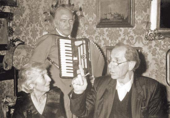 «Dimmi con chi vai, e ti dirò chi sei», sentenzia un noto proverbio. E i compagni di viaggio di Luigi, come le stesse istantanee raccolte in questa mostra ricordano, erano i Turoldo e i Mazzolari, i De Piaz e gli Apollonio, i Nazareno Fabretti e gli Ernesto Balducci, i Bontadini e i Lazzati, per non citarne che alcuni. «Una bella compagnia», diranno forse gli uni e gli altri, magari con una diversa inflessione della voce… «Una bella compagnia», ci ripete con tenerezza, e un po’ di comprensibile rimpianto, la gentile signora Bice, testimone e protagonista di tante ore liete, intense, indimenticabili in casa Santucci, a pochi passi dal Conservatorio, all’ombra del cupolone di Santa Maria della Passione.