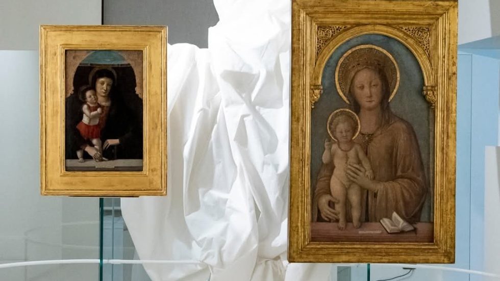 Alla grazia del padre, risponde la modernità del figlio più piccolo. La smagliante «Madonna col Bambino» di Giovanni, infatti, pur dialogando con quella di Iacopo, se ne discosta per una maggiore naturalezza e vivacità, per l’introspezione psicologica delle due figure. L’opera, in prestito dalla Pinacoteca Malaspina di Pavia, pur appartenendo agli esordi artistici del Giambellino ne svela già tutta la caratura, con il giovane proiettato verso nuovi orizzonti.