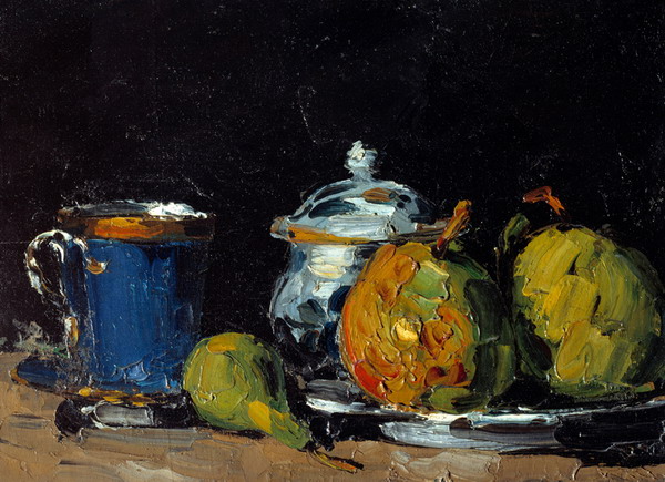 È per questo che le nature morte di Cézanne non sono soltanto raffigurazioni di mele, fiori o bicchieri. Sembrano ritratti di una bellezza effimera e caduca, e sono invece squarci sull’infinito. Paiono istanti casualmente catturati dallo sguardo, ma diventano brani di vita consegnati all’immortalità. Così che la trasformazione in volume e colore di quelle mele, di quei fiori, di quei bicchieri, è talmente profonda da suggerire, più che la parvenza degli oggetti, la loro stessa essenza: come se ognuno di essi, cioè, si ritrovasse al centro stesso dell’universo.