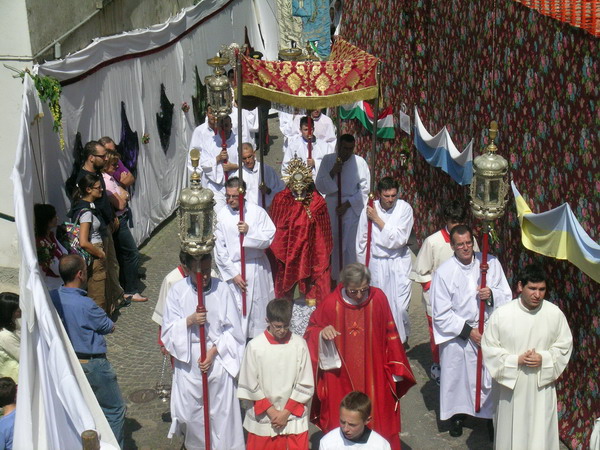 Dopo la messa solenne, nella quale canterà la Corale S. Cecilia di Premana, si svolgerà la processione. Lenzuola, tendaggi, drappi, quadri, fazzoletti di seta, fiori addobbano il percorso in modo che risulti completamente coperto e la processione passi come in un “tunnel”. Le confraternite portano i loro stendardi e candelabri; le donne per l’occasione indossano il costume. Da non perdere la preparazione degli addobbi: fin dall’alba le tele vengono stese per coprire portoni e muri e nascondere le finestre: il tutto è completato con rami verdi e fiori di campo insieme a immagini religiose, e ancora con pizzi e tovaglie ricamate. In alcuni punti si innalzano altari.