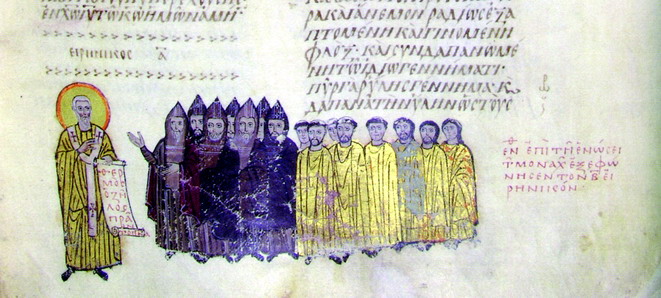 Si continua a discutere, invece, riguardo al luogo dove questa monumentale opera sia stata prodotta. Le miniature, in particolare, paiono fondere nelle figure lo stile bizantino con un “gusto” occidentale, così come i personaggi ecclesiastici sembrano indossare paramenti alla latina (tonsure comprese): la qual cosa potrebbe far quindi pensare a un ambiente italico, e in particolare a un grande monastero di tradizione greca, come all’epoca ve ne erano proprio a Roma. Ma per chi sia stato realizzato questo capolavoro e quali siano state le vicissitudini che l’hanno portato sull’isola di Chio resta ancora un mistero. Un mistero che l’incontro di mercoledì all’Ambrosiana ci ha aiutato, almeno un poco, a svelare.