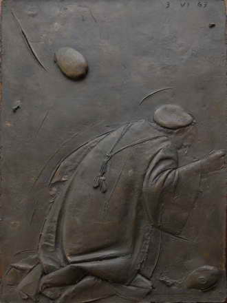 Del 1963, invece, è il bassorilievo di bronzo con la Morte di santo Stefano, realizzato da Giacomo Manzoni, come variante del rilievo della Porta della Morte nella basilica di San Pietro in Vaticano. Un capolavoro della scultura contemporanea, nato dall’amicizia e dal profondo intendimento umano e spirituale di due grandi protagonisti del ventesimo secolo, entrambi lombardi (bergamaschi per la precisione): Manzù, appunto, e papa Giovanni XXIII.