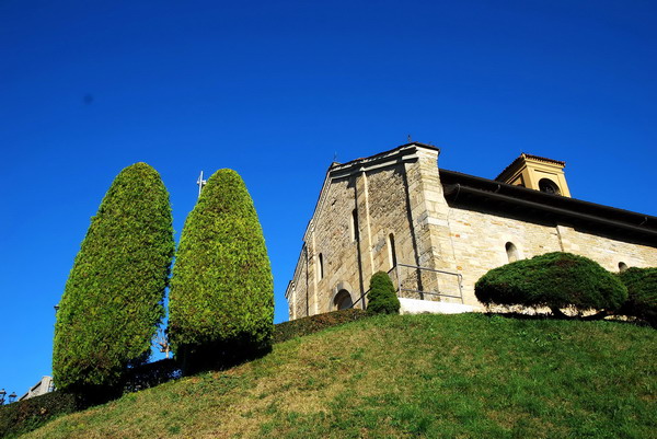 Sì, è davvero bella questa appartata chiesa lecchese, sorta su un poggio come i vicini, frequentati santuari mariani di Imbersago e di Montevecchia, ma ben più antica di essi. Alle spalle la mole rocciosa del Resegone, che veglia senza incombere. E tutto, qui, è misura, semplicità, armonia. Le sfumature cangianti della pietra arenaria nel variare del sole, l’azzurro di quel cielo di Lombardia cantato dal Manzoni, il verde dei prati punteggiato dai bruni e dei gialli dei boschi. E così l’architettura, sobria ed espressiva a un tempo, vigorosa nella sua essenzialità. Tanto da rinunciare a qualsiasi tentazione decorativa, come in un’ansia di purezza, vagheggiata, e infine raggiunta.