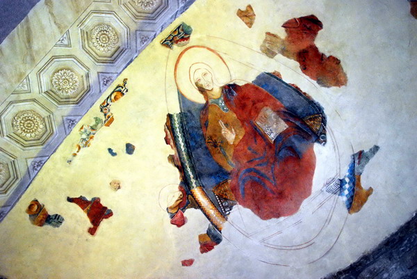 Ma anche restando alla solida realtà dell’edificio, le suggestioni non mancano. Come la rude eleganza delle murature. Come l’accostamento, ben riuscito, fra vetuste memorie e artistiche opere contemporanee. Come i pochi, e quindi ancora più preziosi, frammenti degli originari affreschi. E come, soprattutto, la simbologia che pervade l’intero tempio, insititendo sul numero tre. Tre, infatti, sono le navate della chiesa. Tre le absidi. E tre le finestre che si aprono ad oriente, nell’abside centrale e maggiore, illuminando la mensa eucaristica al sorgere del sole. Luminosa allusione al mistero della Trinità, caro alla teologia benedettina e alla spiritualità monastica.