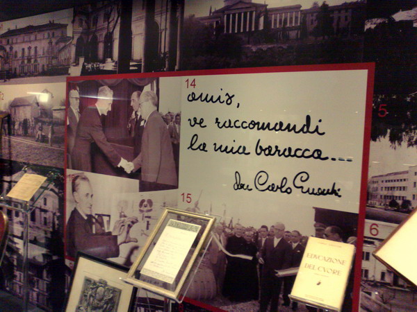 Un museo inaugurato il 27 ottobre scorso – per festeggiare sia i tre anni dalla beatificazione, sia i 110 anni dalla nascita del sacerdote -, con una cerimonia a cui hanno partecipato il ministro per i Beni e le attività culturali Lorenzo Ornaghi; il presidente della Fondazione Don Gnocchi monsignor Angelo Bazzari; il vescovo di Lodi monsignor Giuseppe Merisi (la cui diocesi ha dato i natali a don Carlo), insieme ad altre autorità e a molti fedeli e amici della Fondazione.