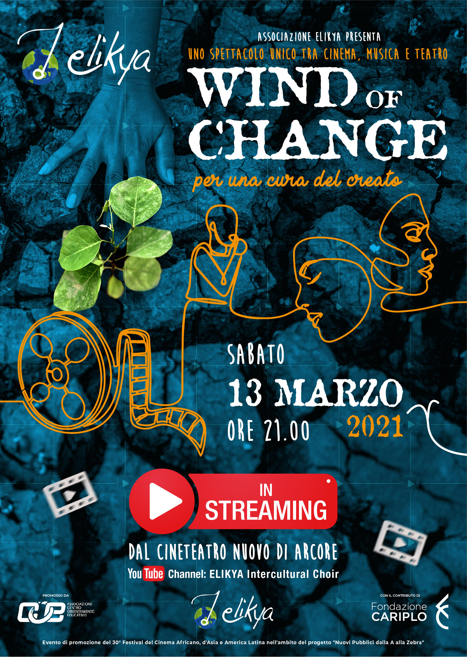 Lo spettacolo “Wind of change”, ideato da Associazione Elikya, dopo una tournée dal vivo nata dalla collaborazione con la regista Annamaria Ponzellini, propone un evento in streaming dal Cineteatro Nuovo di Arcore sabato 13 marzo alle ore 21.