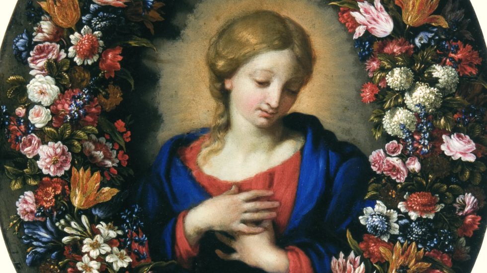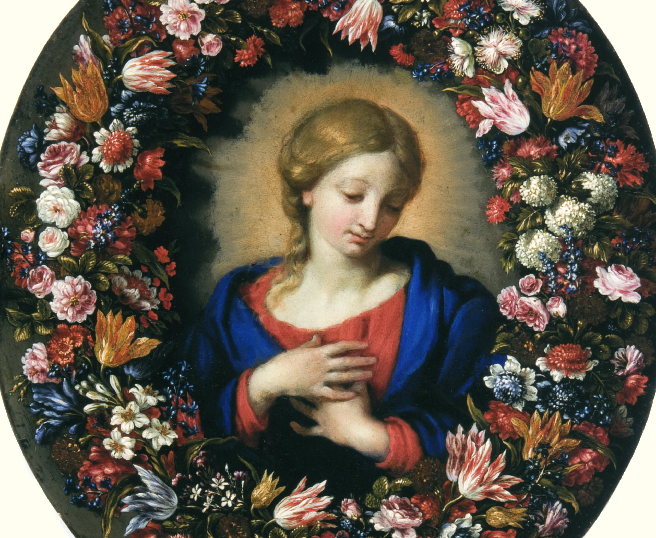 Soltanto sette le opere esposte, nella mostra curata da Alessandro Rossi e Andrea Dall’Asta. Ma la qualità è davvero elevata. Come nella coppia di ovali attribuita alle mani di due differenti artisti del XVII secolo: Carlo Maratta per le figure, lo specialista Giovanni Stanchi per le ghirlande fiorite.