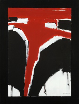 Giancarlo Cerri “religioso” cresce parallelamente nel dolore collettivo e privato, ma nel contempo nell’estrema e ineluttabile fede nell’uomo e nell’umanità. Tutto si trasforma in una gestione ben precisa degli spazi e dei colori: rosso, nero e giallo accrescono la definizione stessa delle linee. “La mano è scabra come non mai, cerca il simbolo con forza, si muove scandendo equilibri semplicissimi eppure efficacissimi, sembra manovrata solo dalla sofferenza, dalla pretesa di sentirsi innocente ma non per questo risparmiata da un destino che tutti ci accomuna”, precisa ancora Elisabetta Muritti.