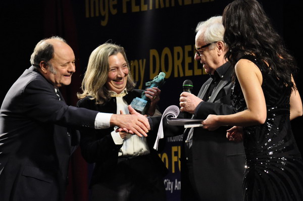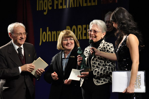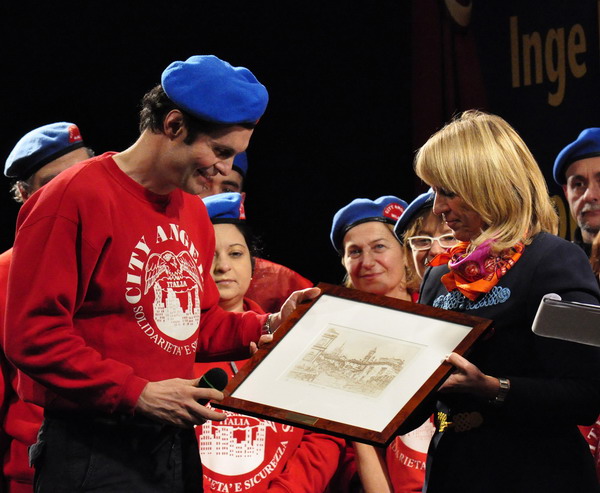 Milano, dunque, al centro della serata condotta con spigliatezza da Lorena Bianchetti. La città-culla per chi vi è nato e vi ritorna sempre volentieri per ricordare momenti felici («al Manzoni ho trascorso tante serate piacevoli – ha confessato Dorelli -, anche se lo spettacolo che più mi è rimasto nel cuore è Aggiungi un posto a tavola…»). La città ferita dalla guerra («ho ancora negli occhi le macerie in corso Vittorio Emanuele…», il ricordo della Barzizza), ma anche capace di divertirsi («qui c’è sempre il miglior pubblico d’Italia», ha sottolineato ancora l’attrice). La città aperta al mondo e per questo accogliente verso chi vi arriva in cerca di affermazione professionale: «Milano è europea per vocazione», ha rilevato la Feltrinelli, che pur col suo marcato accento tedesco ha rivendicato orgogliosamente di essere «di nazionalità milanese». E la città, infine, che si conferma “col cuore in mano”: «Noi City Angels siamo presenti in tante città, ma nessuna è solidale come Milano», ha precisato Furlan.