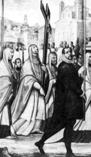Di certo il primo accenno al Santo Chiodo che noi conosciamo è contenuto in un discorso di sant’Ambrogio, nell’orazione funebre tenuta in memoria dell’amico e imperatore Teodosio, esattamente 1610 anni fa, il 25 febbraio 395. In quell’occasione il vescovo spiegò come la madre di Costantino,sant’Elena, durante un suo viaggio in Terrasanta rinvenne per ispirazione divina non solo la croce, ma anche i chiodi che erano serviti alla crocefissione. Con due di essi volle forgiare dei simboli assai particolari, da donare al figlio imperatore affinchè governasse con giustizia e con l’aiuto di Dio. Uno dei chiodi fu dunque modellato come un «freno» (cioè un morso di cavallo), l’altro a mo’ di diadema (ovvero una sorta di corona). Entrambi questi segni distintivi furono poi tramandati da Costantino ai suoi sucessori, fino appunto a Teodosio.