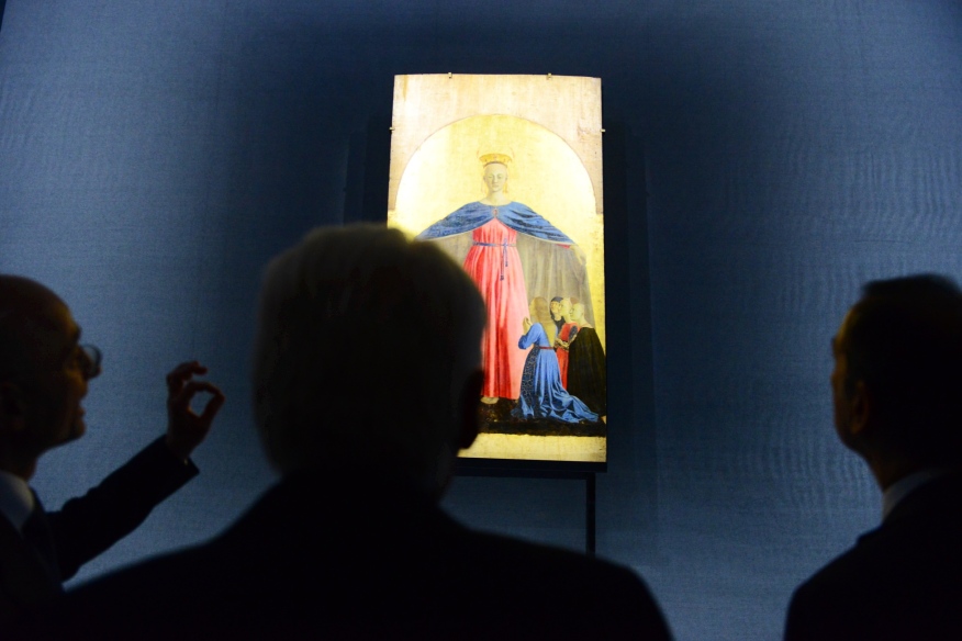 La bellissima pala è giunta in prestito da Sansepolcro, cittadina toscana natia dello stesso Piero della Francesca. Costituisce il pannello centrale di un grande polittico, oggi ricomposto nel locale Museo Civico. Rimarrà esposta gratuitamente a Palazzo Marino fino all’8 gennaio.