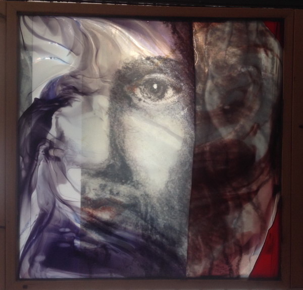 “Ecce Homo”: colui che ci dona la vita. E’ il volto del Cristo risorto e che appare, informale, alla sinistra dell’opera. Con velature di forme e colori che la trasparenza del vetro esalta, Sante Pizzol crea una luminosa e sorprendente dissolvenza tra il volto umano del Cristo e il suo apparire da risorto a segnare una continuità nella diversità: “apparve sotto altro aspetto a due di loro mentre erano in cammino verso la campagna”. (Mc 16, 12). A questa continuità nella trasformazione, a questa visibilità che si vela di trascendenza l’artista affida il compiersi del Mistero. “La missione che Gesù ha ricevuto dal Padre è stata quella di rivelare il mistero dell’amore divino nella sua pienezza. ’Dio è amore’”. (Papa Francesco) Un amore che si fa sorgente viva di grazia e di verità e che scaturisce proprio dalla sguardo misericordioso del Cristo per farsi inarrestabile e debordante fiume di vita per tutta l’umanità. Non più un trittico di volti, ma un unico “Volto” sul quale fissare il nostro sguardo per poter “cogliere l’amore della SS. Trinità. (Papa Francesco)