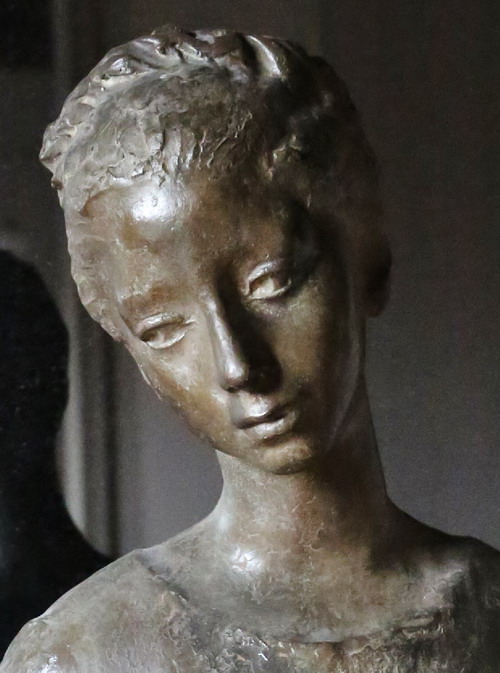Questa scultura in bronzo presenta un soggetto familiare, quasi intimo. Una giovane ragazzina è ritratta nell’età di passaggio: non è più una bambina, ma non è ancora una donna. Da un lato si mostra sinuosa nelle movenze, dall’altro appare ancora acerba nelle fattezze e nelle proporzioni.