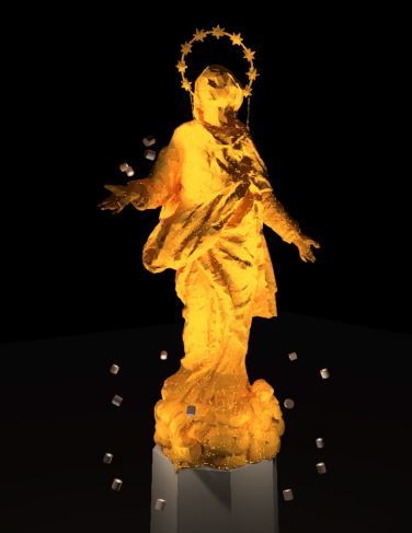 La parte posteriore della statua risulta illuminata solo nella parte inferiore. Questo effetto è dovuto in parte alla ripartizione delle intensità luminose delle lampade, ma soprattutto alle geometrie di installazione poco favorevoli.